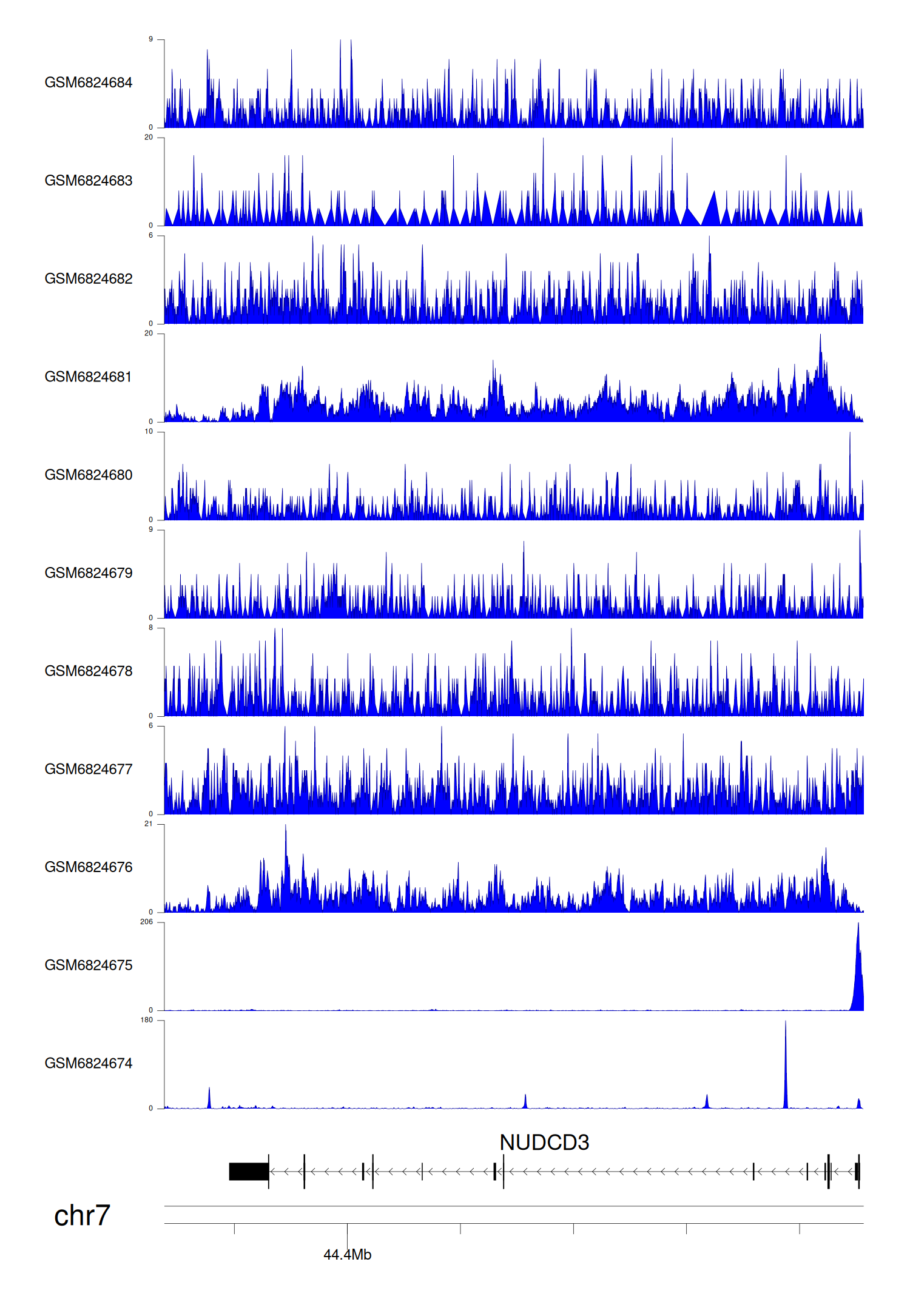 > Dataset: GSE144329 - NUDCD3 peak across samples