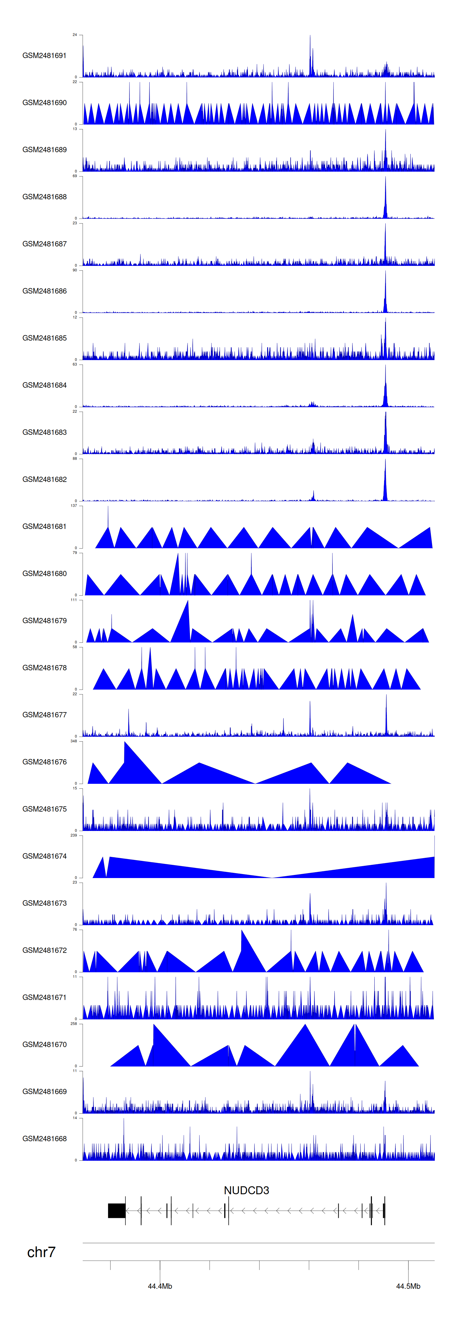 > Dataset: GSE94732 - NUDCD3 peak across samples