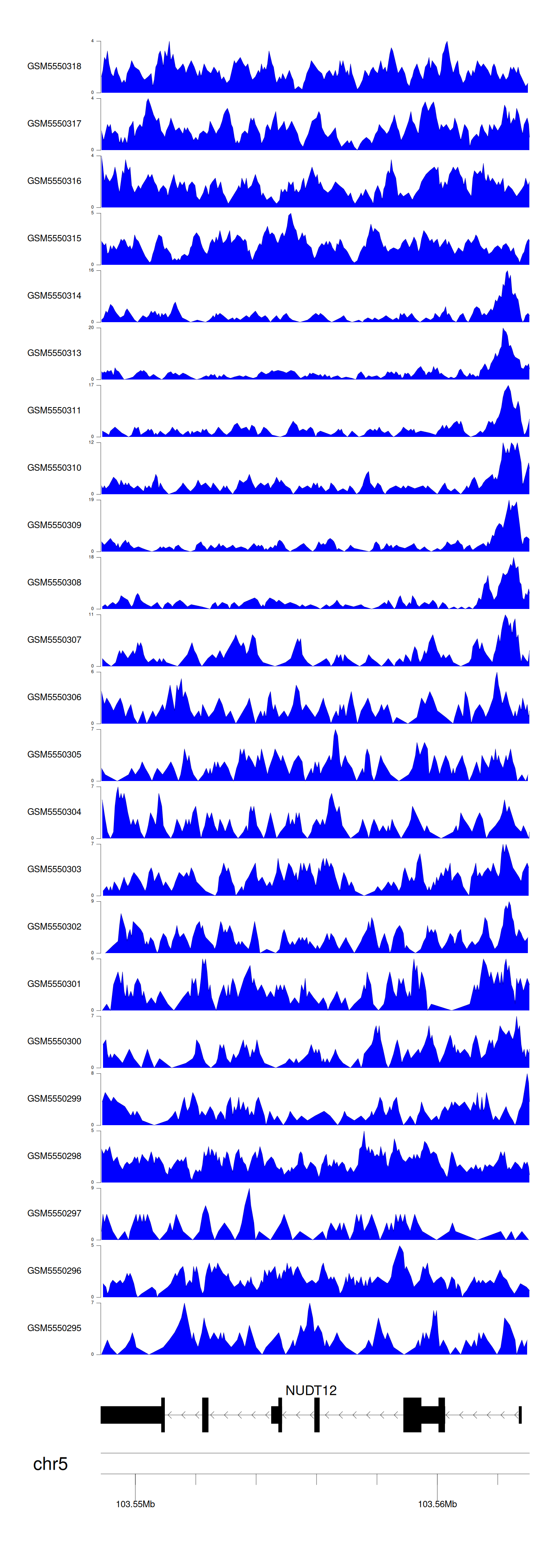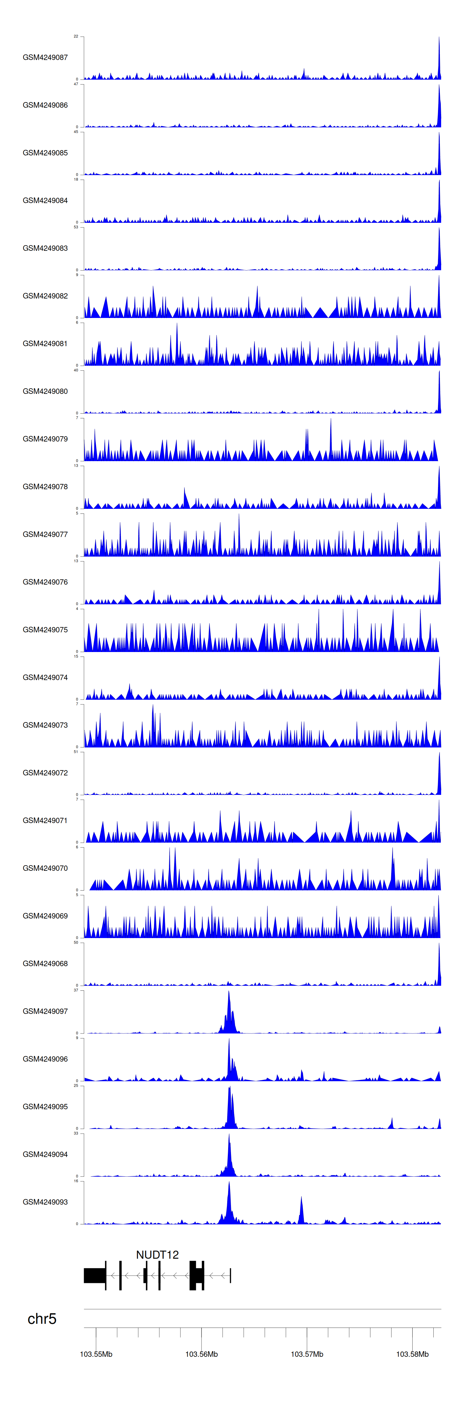 > Dataset: GSE143026 - NUDT12 peak across samples