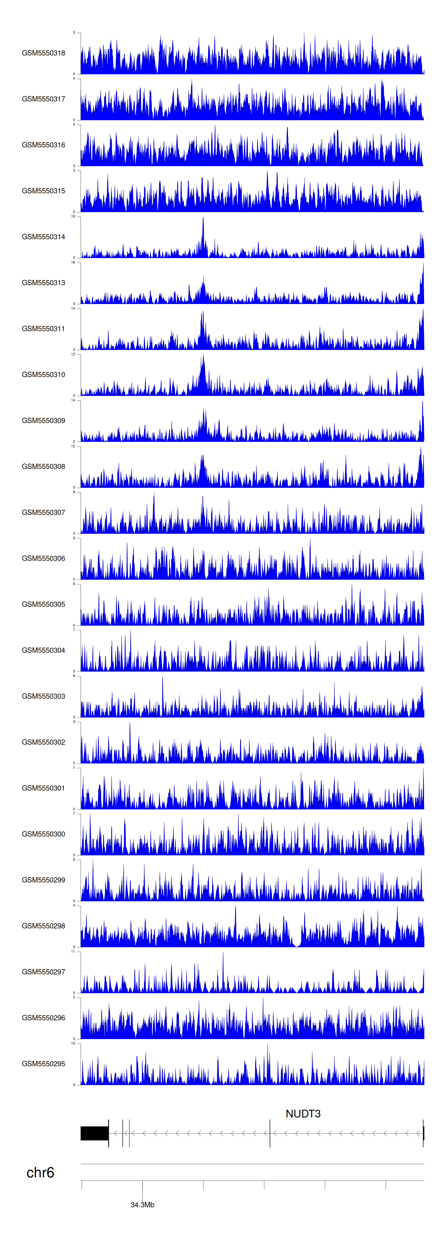> Dataset: GSE143026 - NUDT3 peak across samples