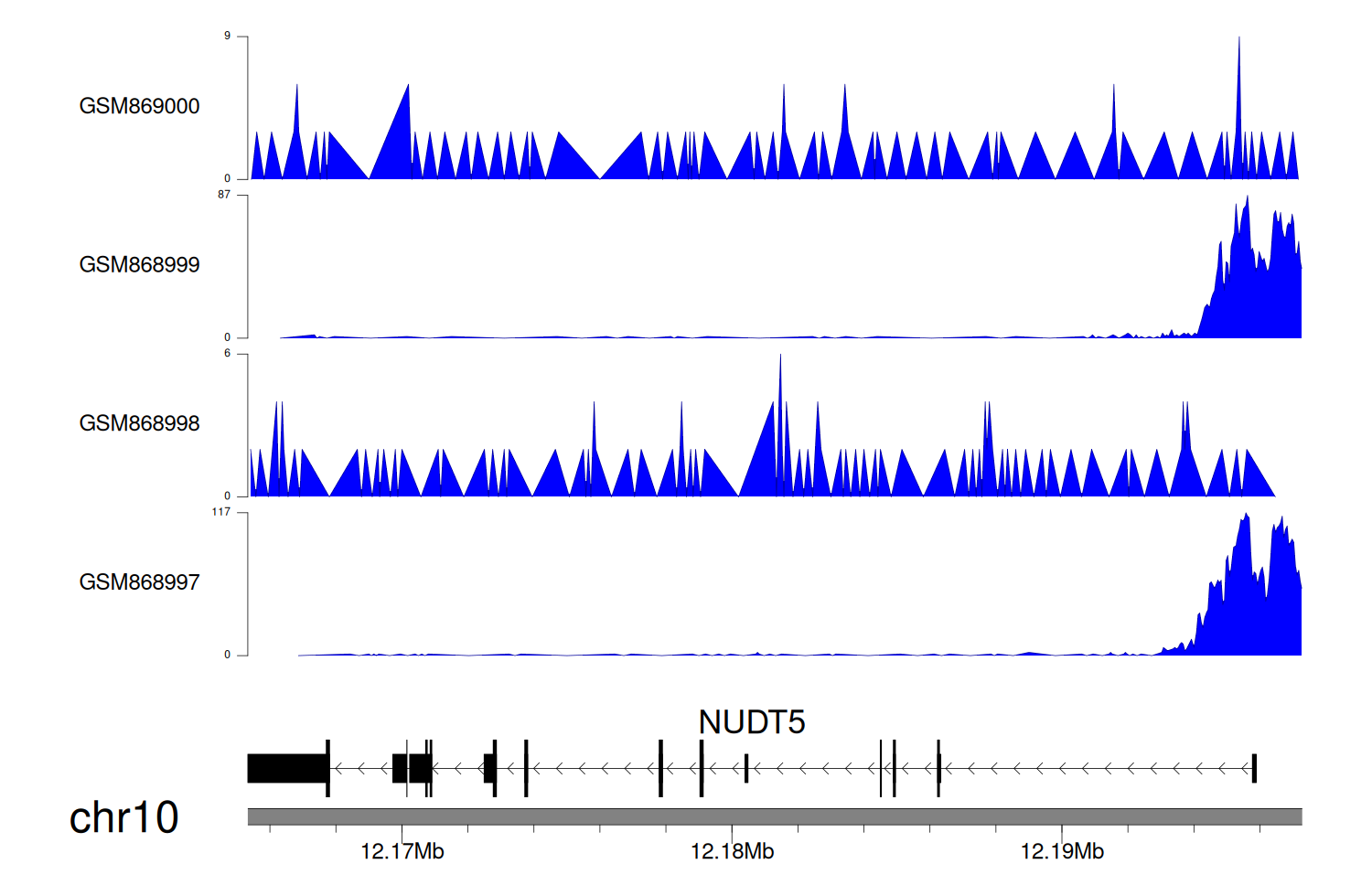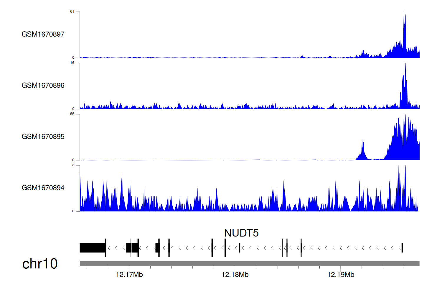 > Dataset: GSE68402 - NUDT5 peak across samples