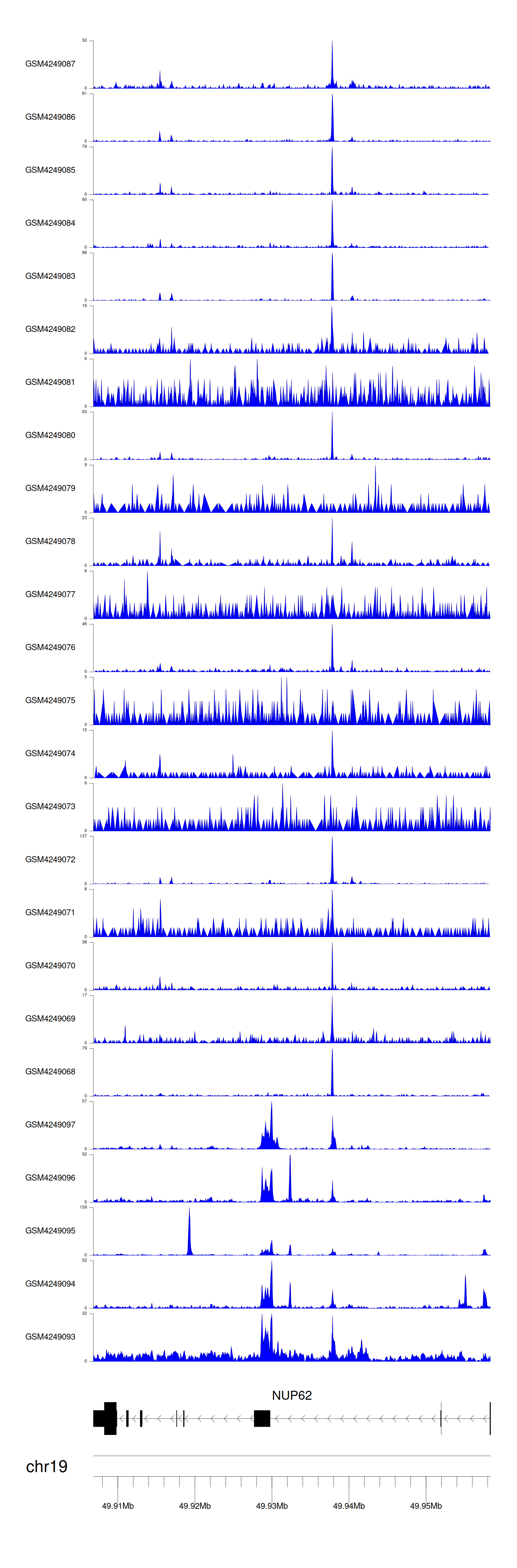 > Dataset: GSE143026 - NUP62 peak across samples
