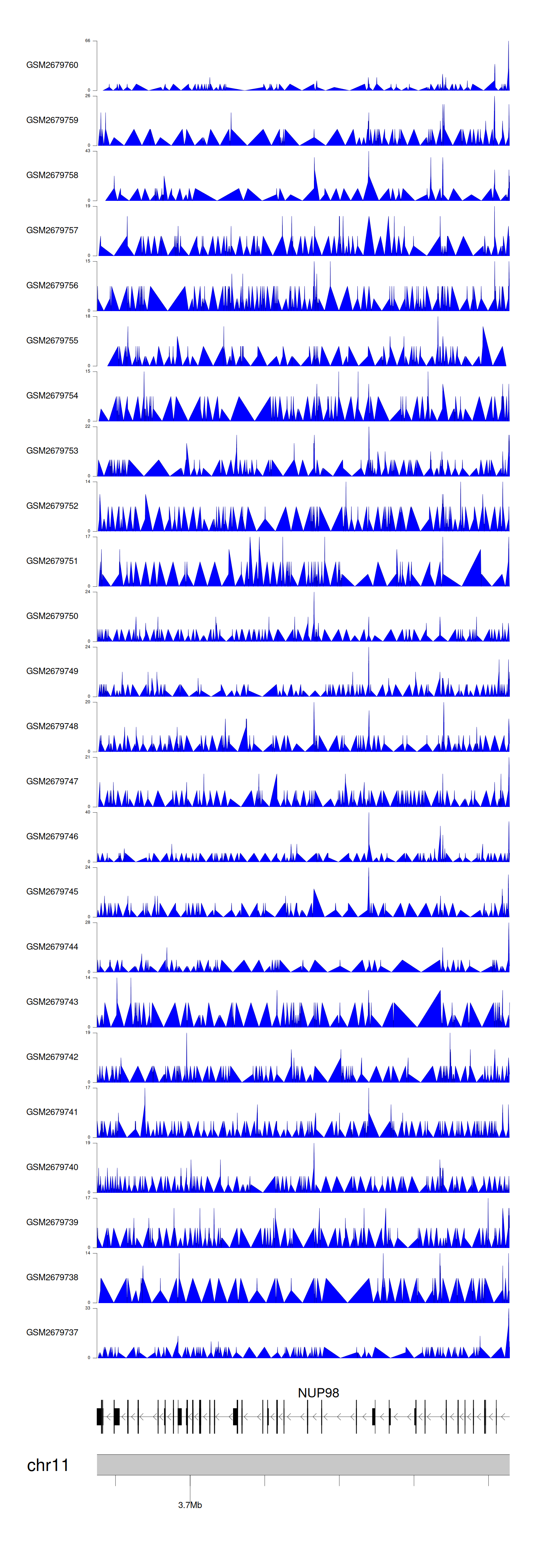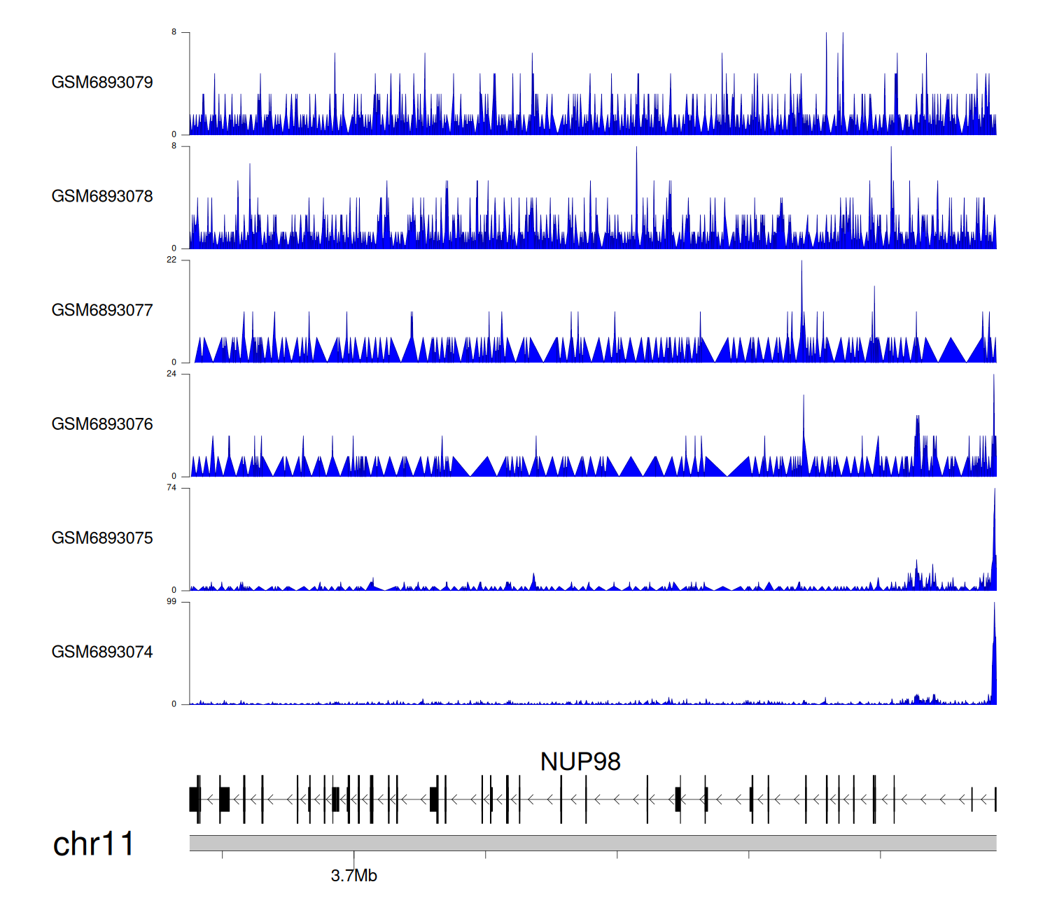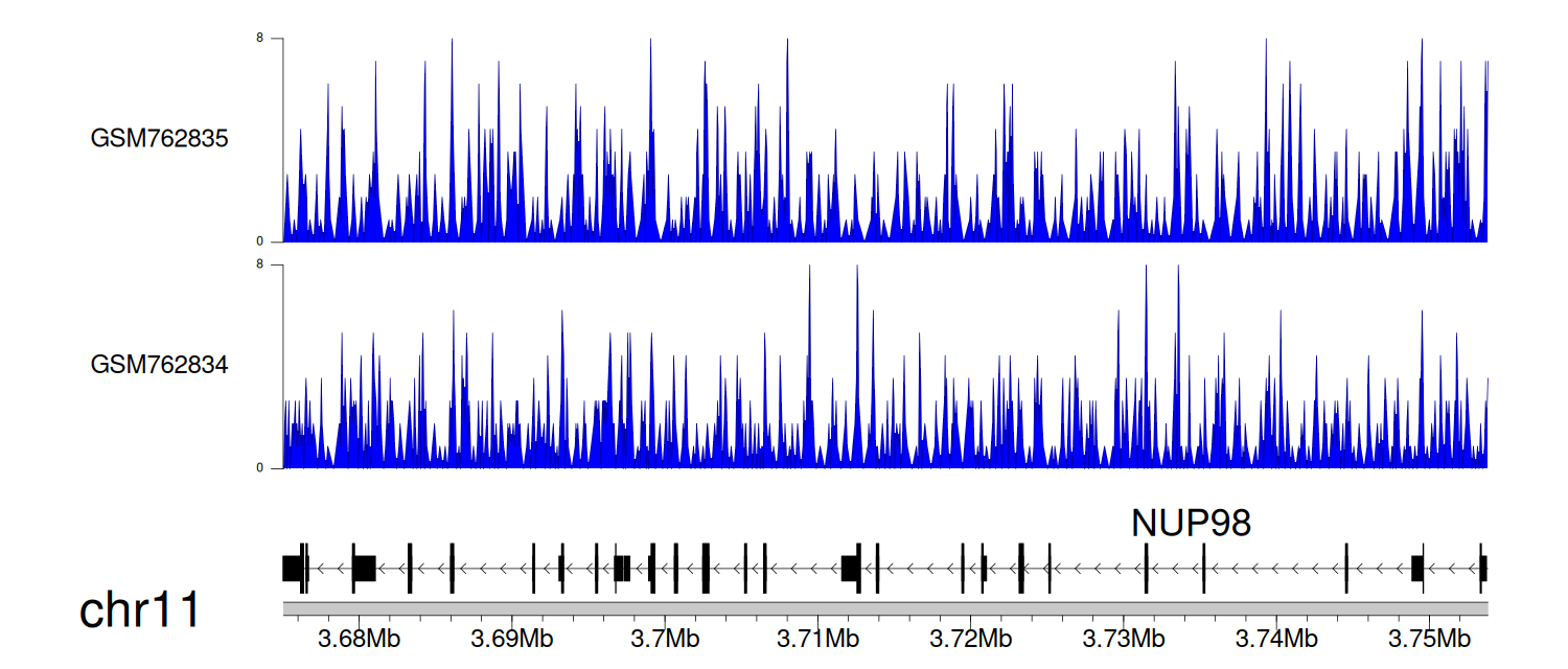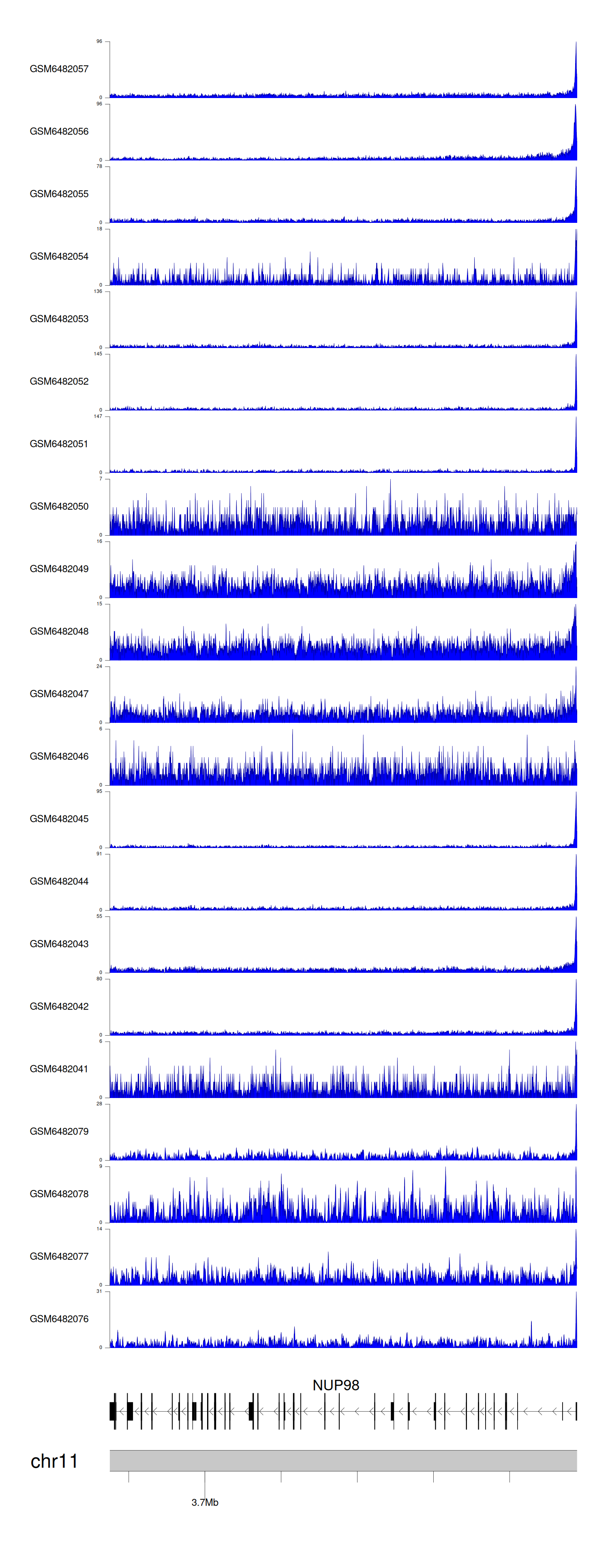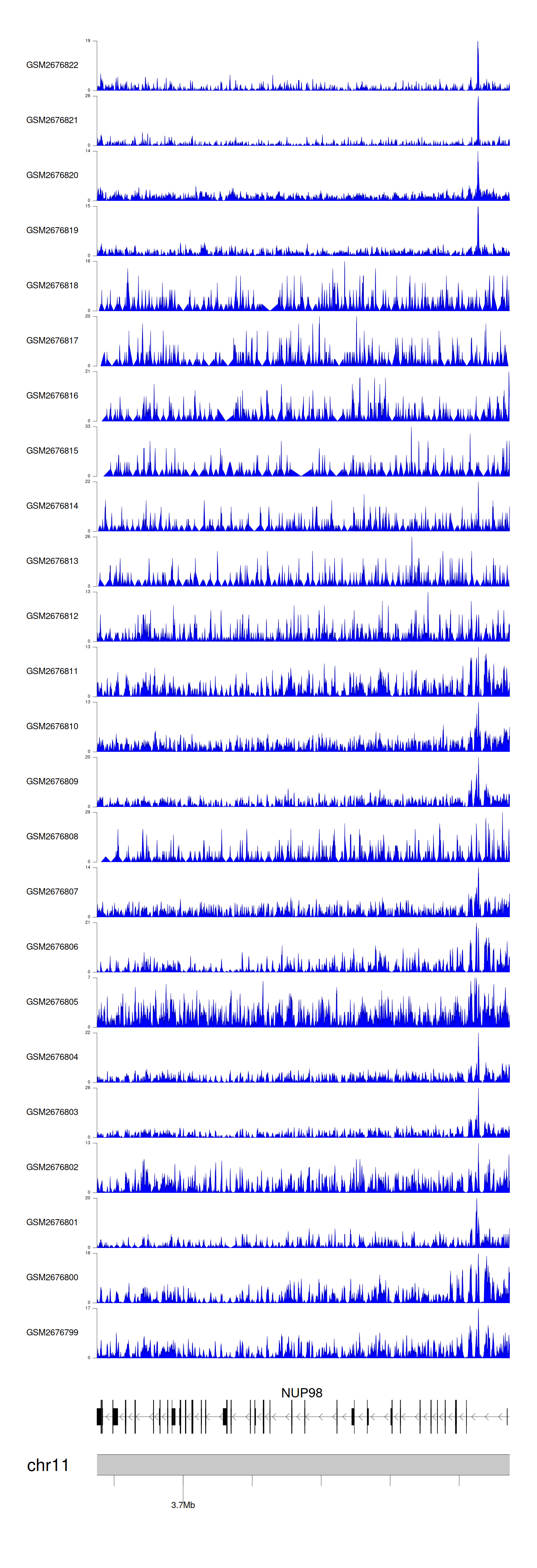 Summary Nuclear pore complexes (NPCs) regulate the transport of macromolecules between the nucleus and cytoplasm, and are composed of many polypeptide subunits, many of which belong to the nucleoporin family. This gene belongs to the nucleoporin gene family and encodes a 186 kDa precursor protein that undergoes autoproteolytic cleavage to generate a 98 kDa nucleoporin and 96 kDa nucleoporin. The 98 kDa nucleoporin contains a Gly-Leu-Phe-Gly (GLGF) repeat domain and participates in many cellular processes, including nuclear import, nuclear export, mitotic progression, and regulation of gene expression. The 96 kDa nucleoporin is a scaffold component of the NPC. Proteolytic cleavage is important for targeting of the proteins to the NPC. Translocations between this gene and many other partner genes have been observed in different leukemias. Rearrangements typically result in chimeras with the N-terminal GLGF domain of this gene to the C-terminus of the partner gene. Alternative splicing results in multiple transcript variants encoding different isoforms, at least two of which are proteolytically processed. Some variants lack the region that encodes the 96 kDa nucleoporin. [provided by RefSeq, Feb 2016]