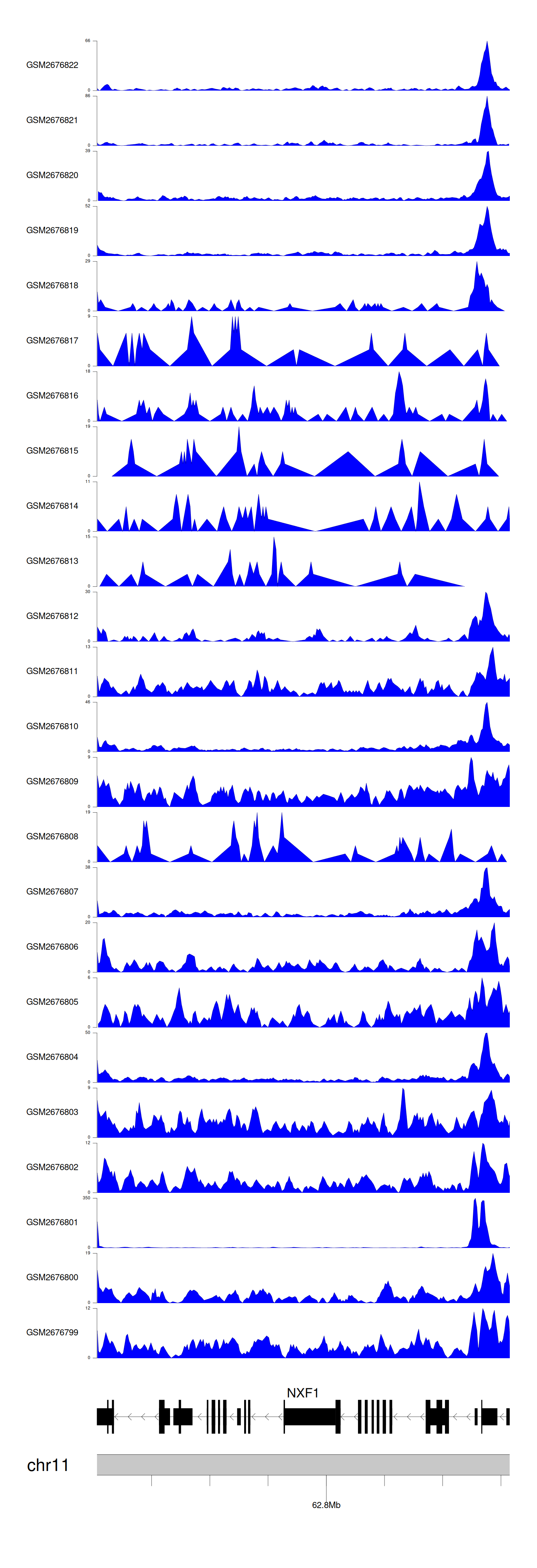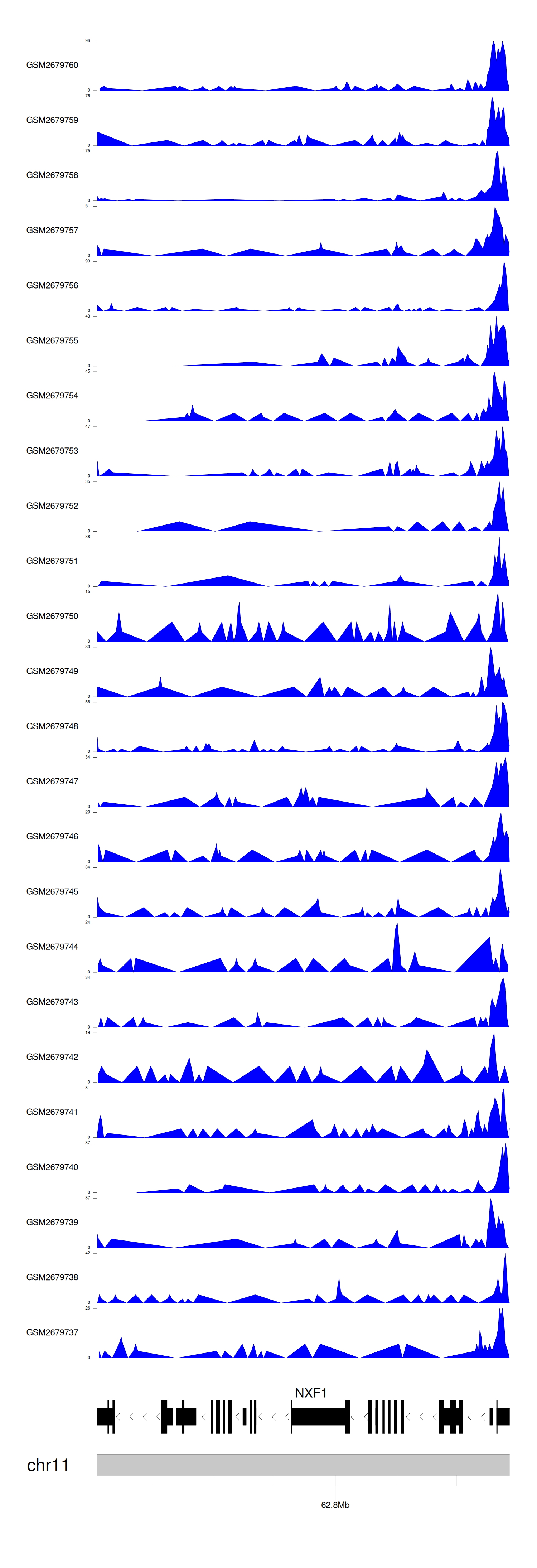 Summary This gene is one member of a family of nuclear RNA export factor genes. Common domain features of this family are a noncanonical RNP-type RNA-binding domain (RBD), 4 leucine-rich repeats (LRRs), a nuclear transport factor 2 (NTF2)-like domain that allows heterodimerization with NTF2-related export protein-1 (NXT1), and a ubiquitin-associated domain that mediates interactions with nucleoporins. The LRRs and NTF2-like domains are required for export activity. Alternative splicing seems to be a common mechanism in this gene family. The encoded protein of this gene shuttles between the nucleus and the cytoplasm and binds in vivo to poly(A)+ RNA. It is the vertebrate homologue of the yeast protein Mex67p. The encoded protein overcomes the mRNA export block caused by the presence of saturating amounts of CTE (constitutive transport element) RNA of type D retroviruses. Alternative splicing results in multiple transcript variants. [provided by RefSeq, Jul 2008]