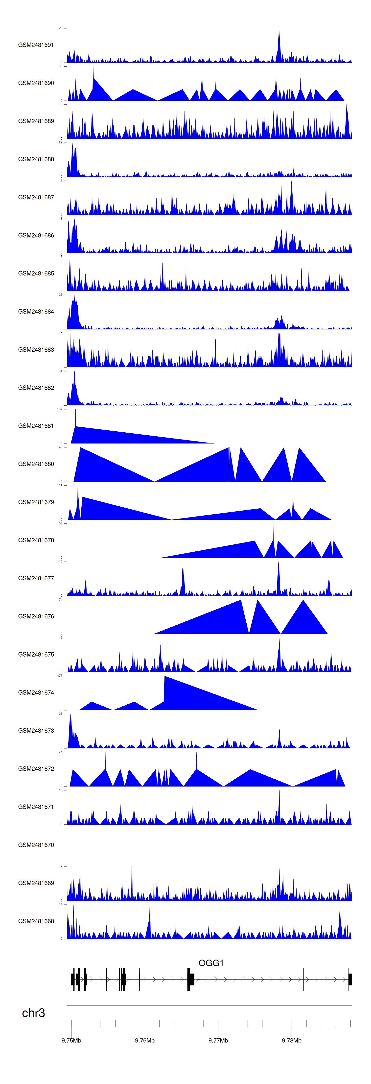 > Dataset: GSE94732 - OGG1 peak across samples
