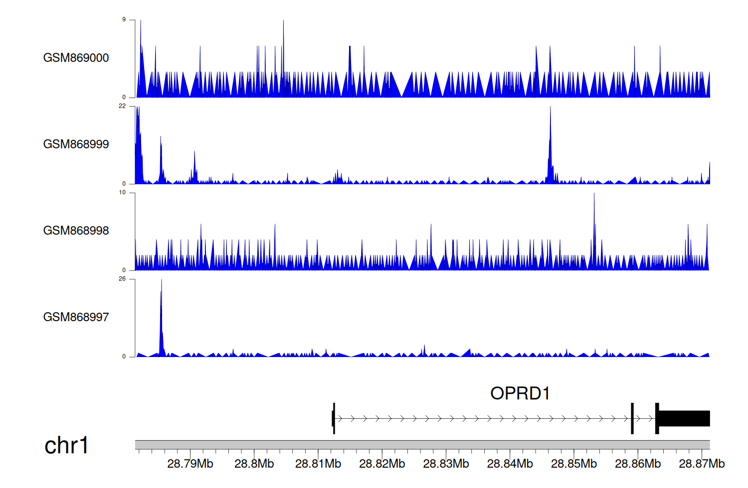 > Dataset: GSE68402 - OPRD1 peak across samples