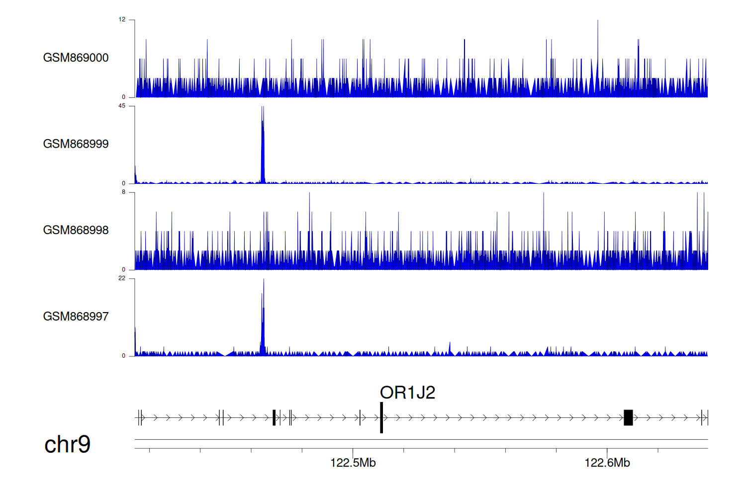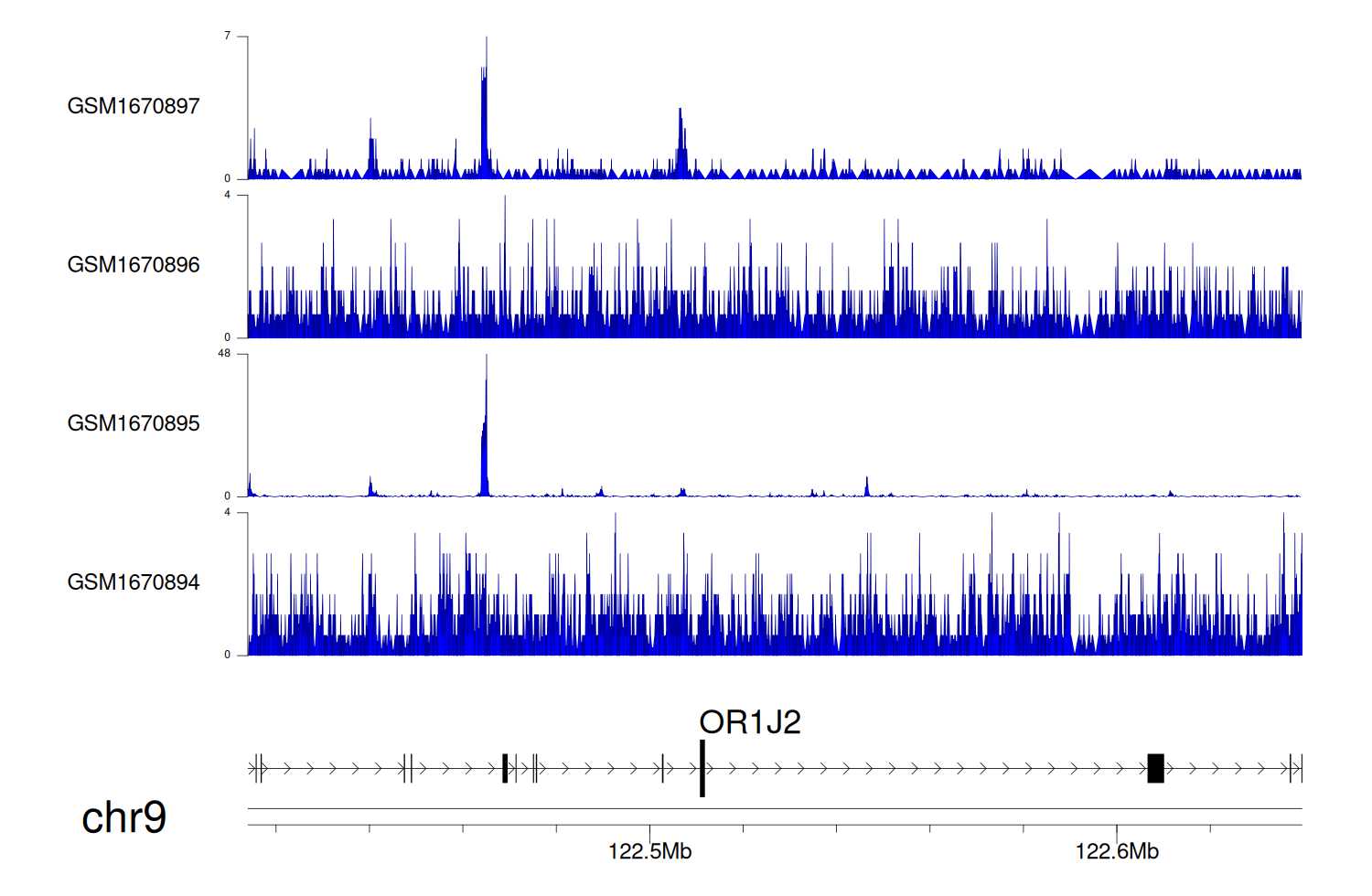 > Dataset: GSE68402 - OR1J2 peak across samples