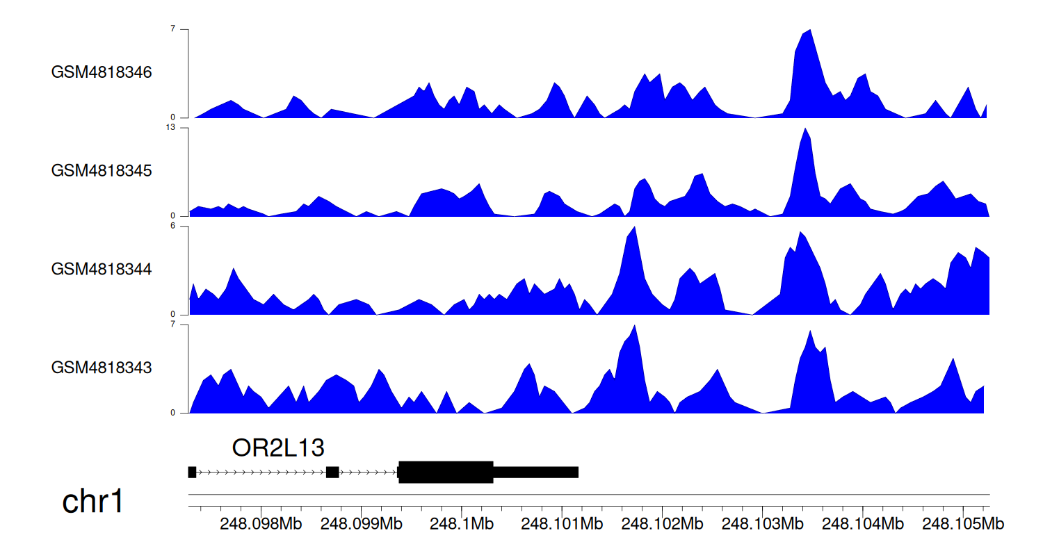 > Dataset: GSE131257 - OR2L13 peak across samples