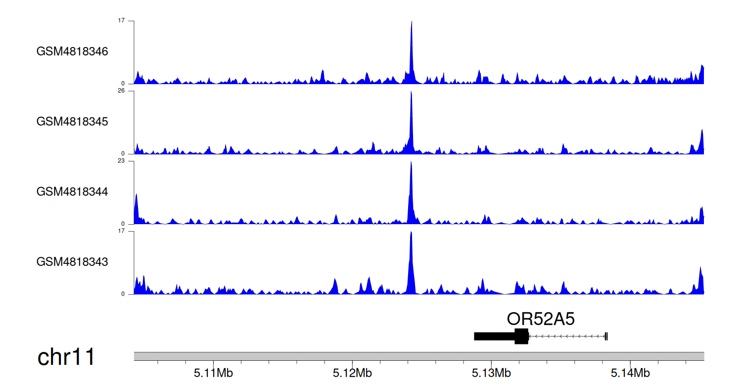 > Dataset: GSE131257 - OR52A5 peak across samples