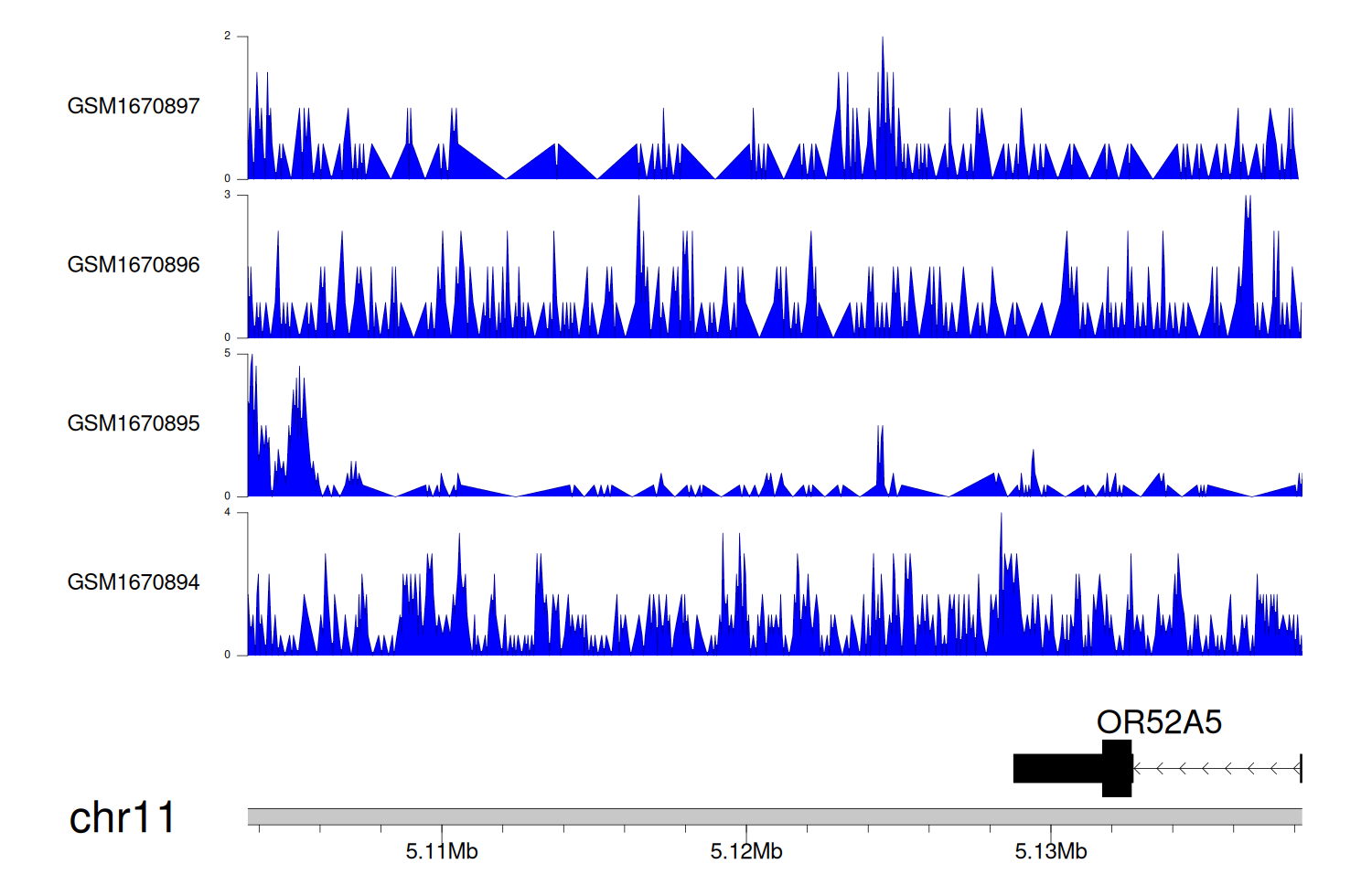 > Dataset: GSE68402 - OR52A5 peak across samples
