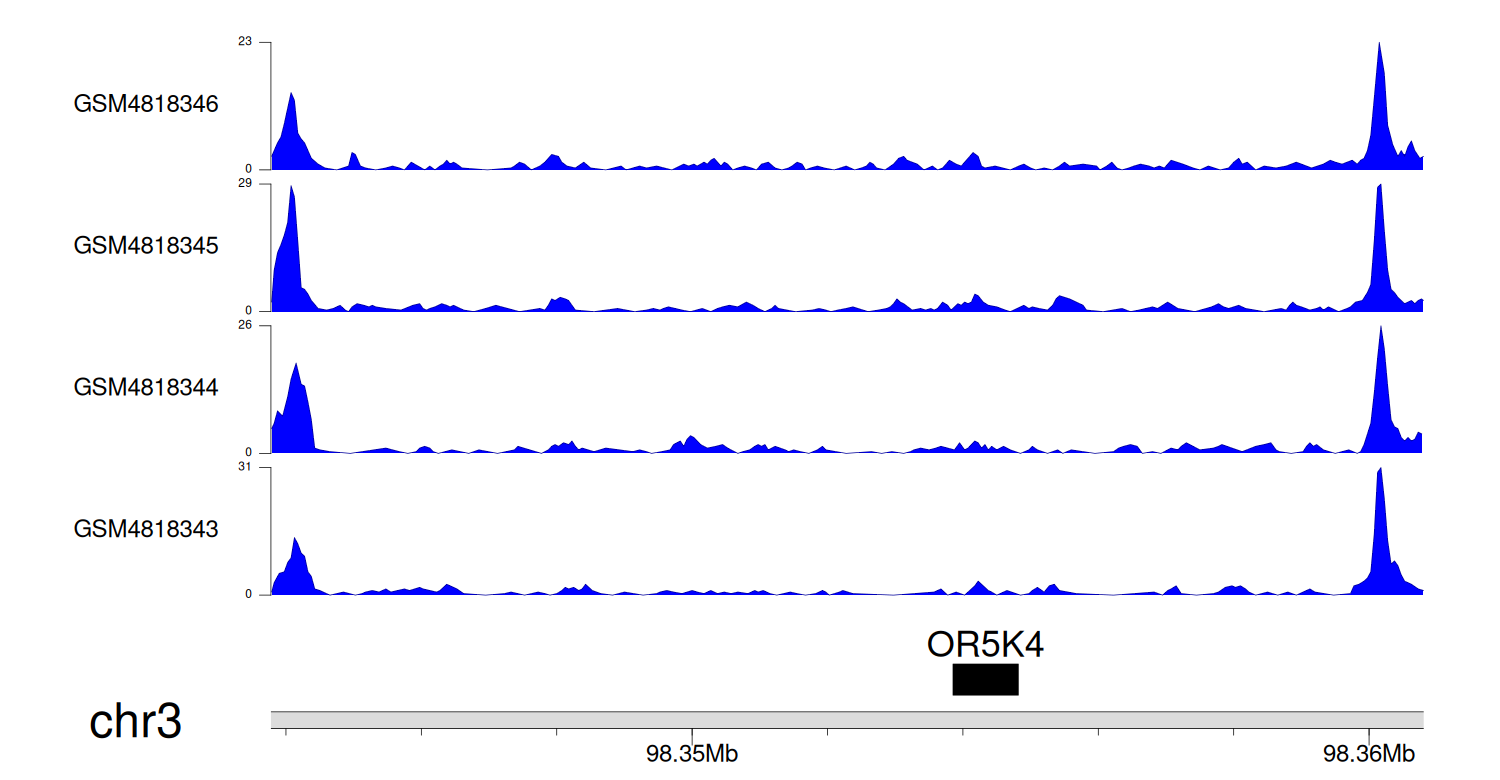 > Dataset: GSE131257 - OR5K4 peak across samples