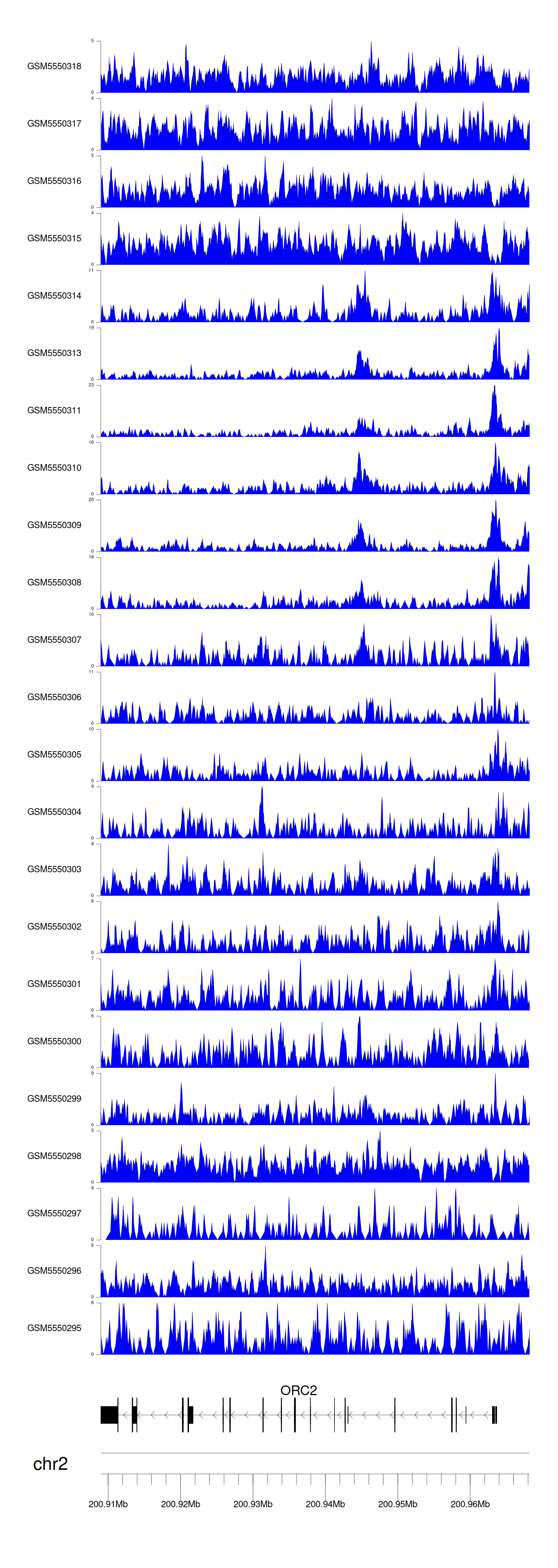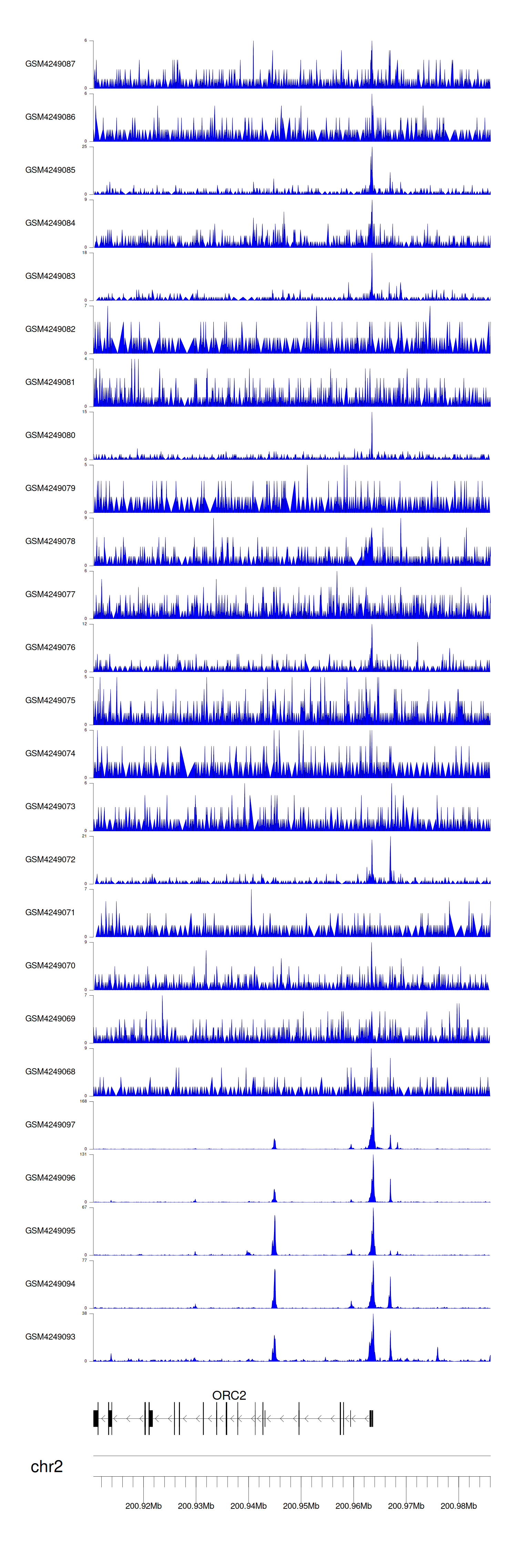 > Dataset: GSE143026 - ORC2 peak across samples