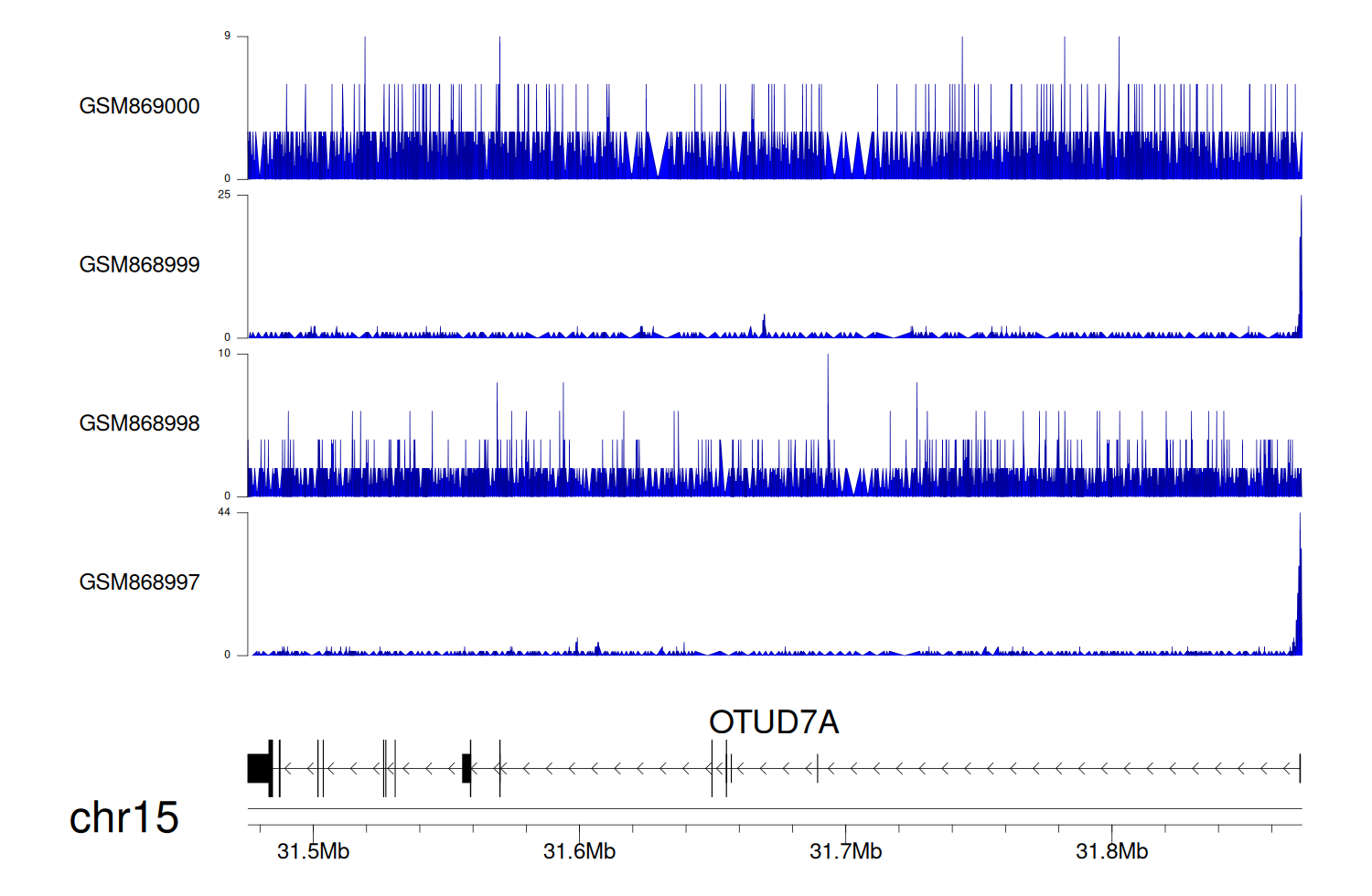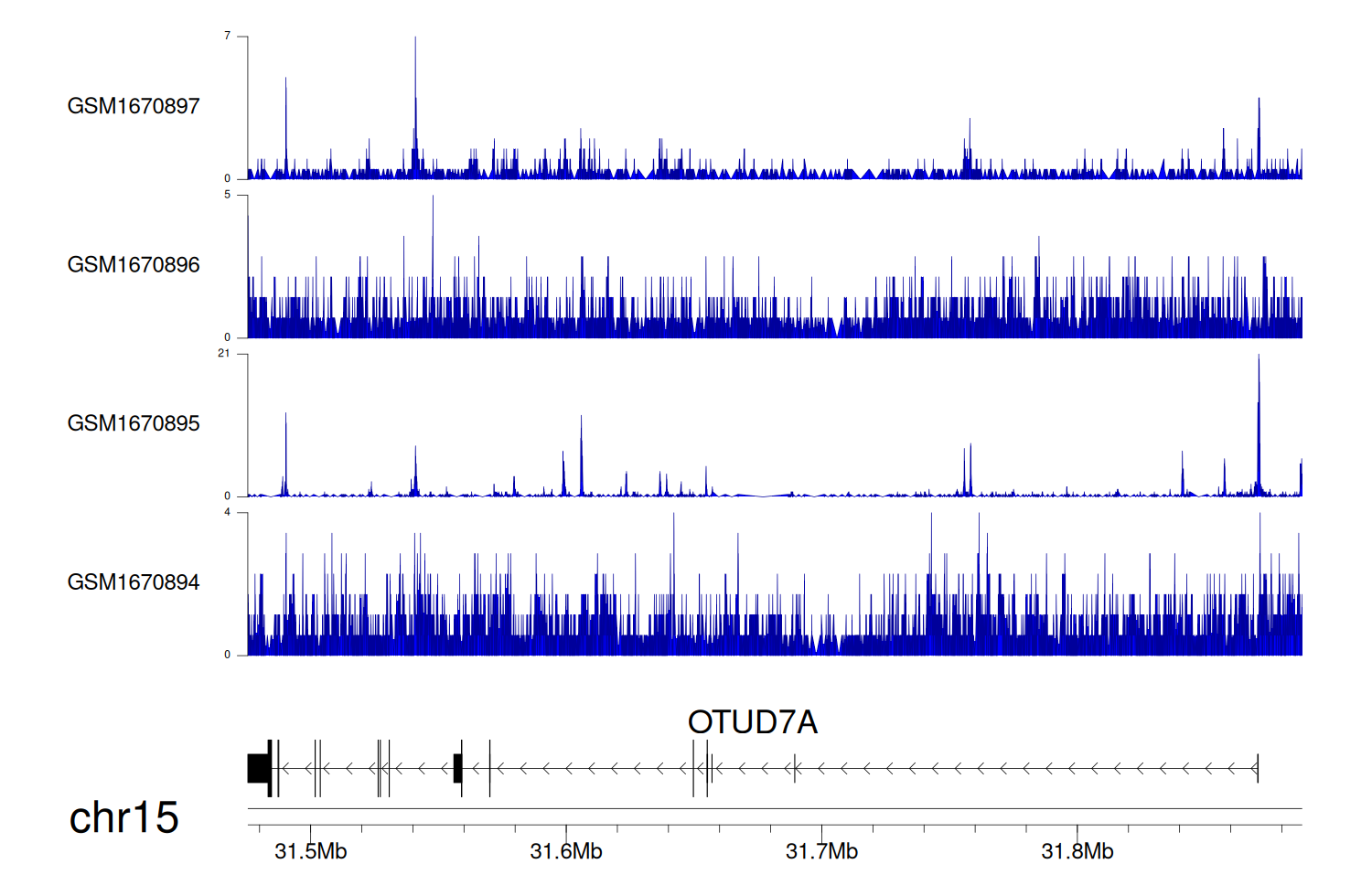 > Dataset: GSE68402 - OTUD7A peak across samples