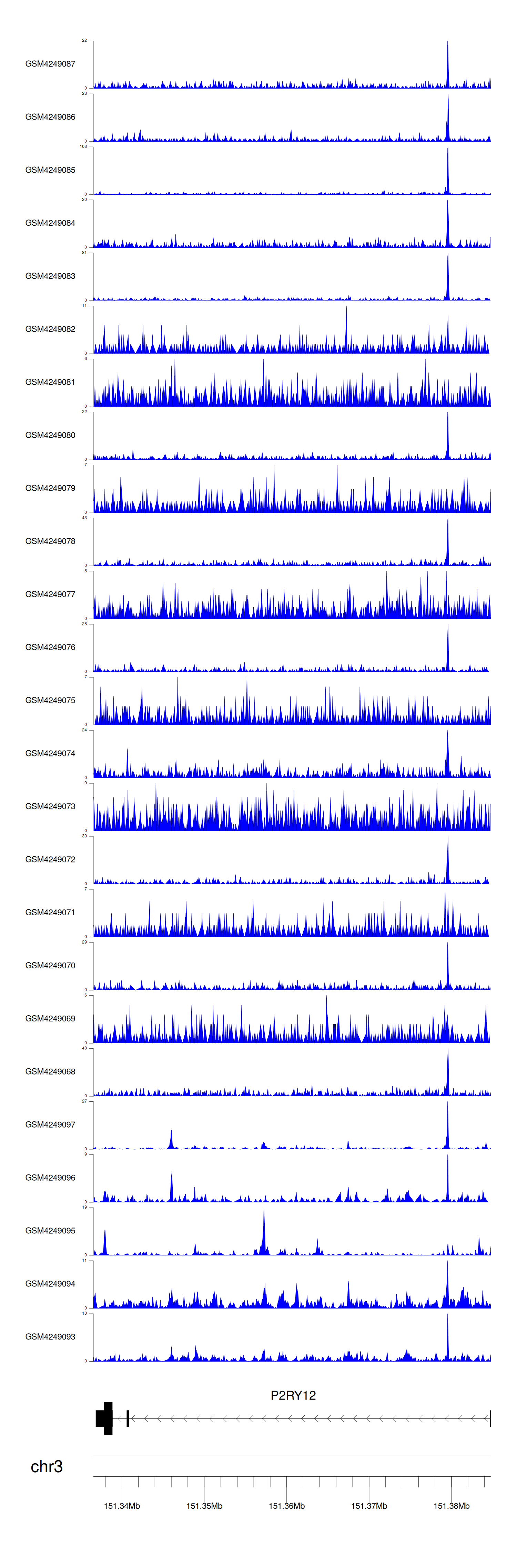 > Dataset: GSE143026 - P2RY12 peak across samples