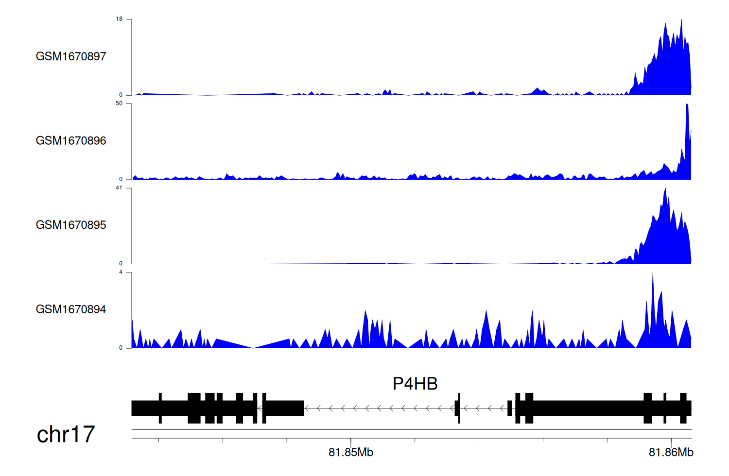 > Dataset: GSE68402 - P4HB peak across samples