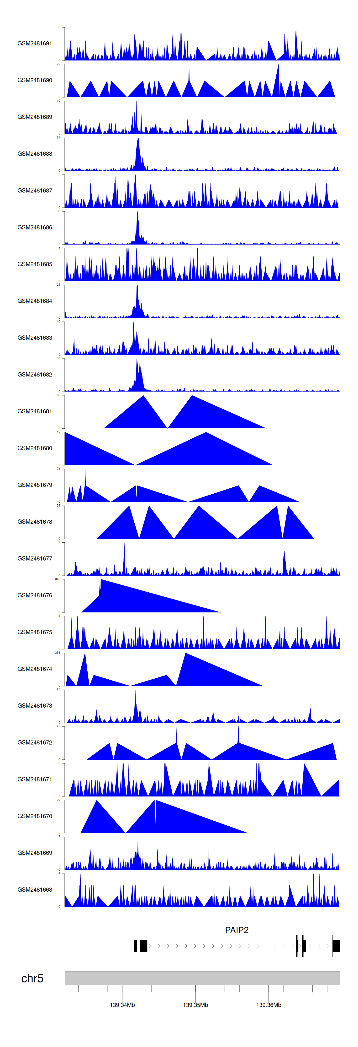 > Dataset: GSE94732 - PAIP2 peak across samples