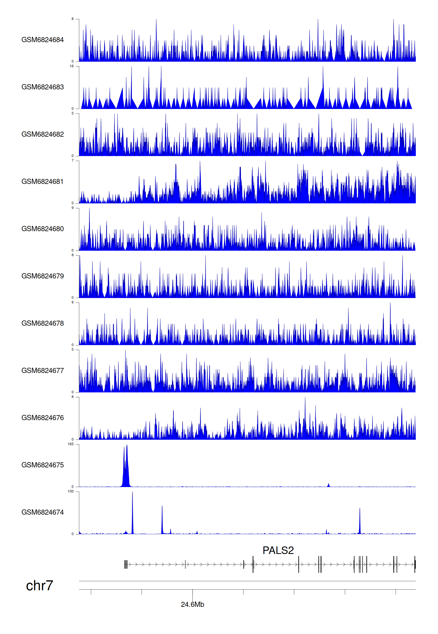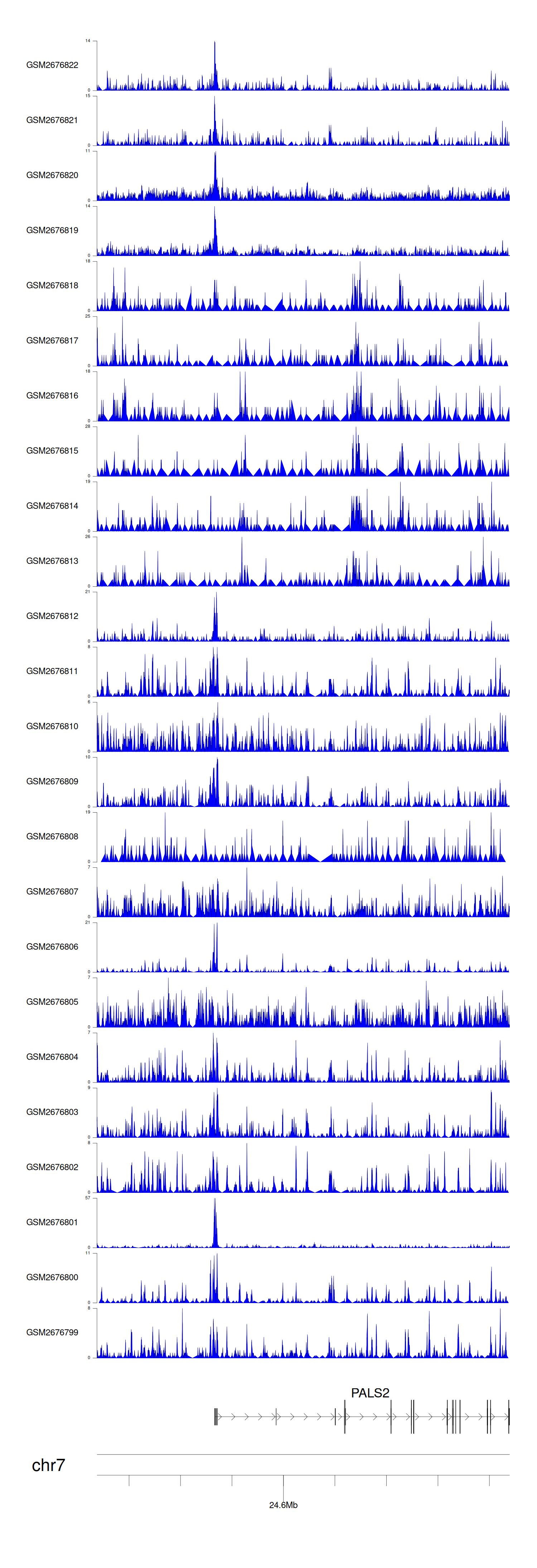 > Dataset: GSE165703 - PALS2 peak across samples