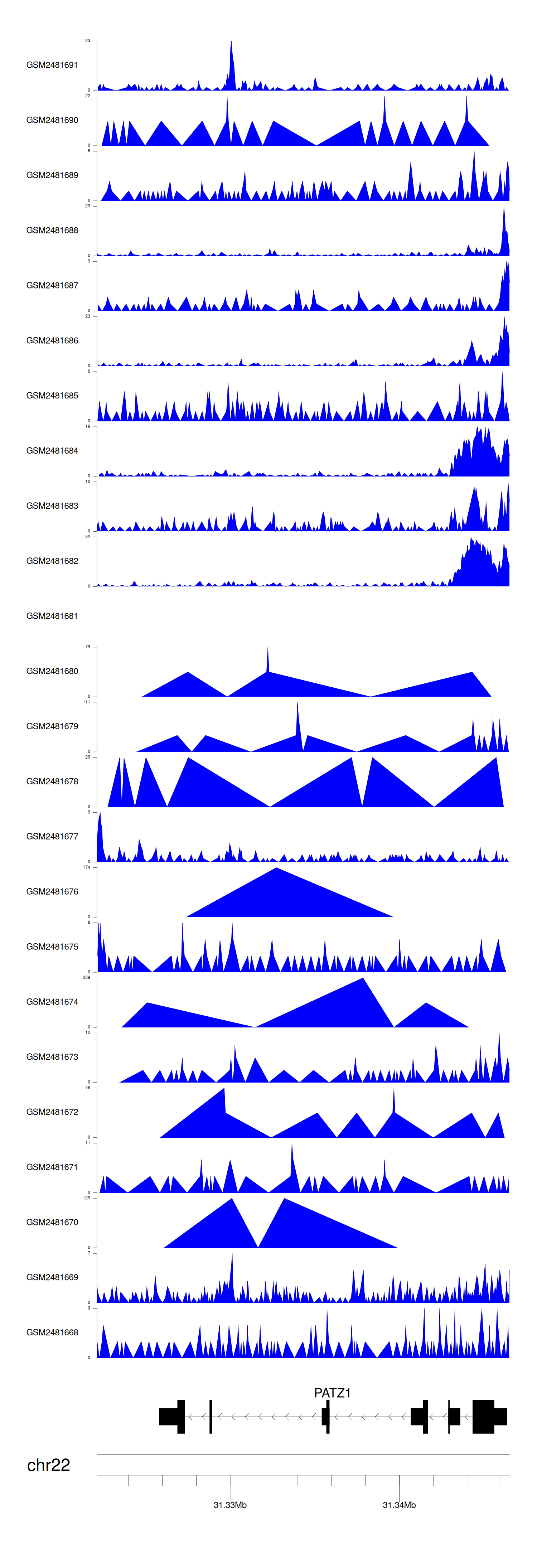 > Dataset: GSE94732 - PATZ1 peak across samples