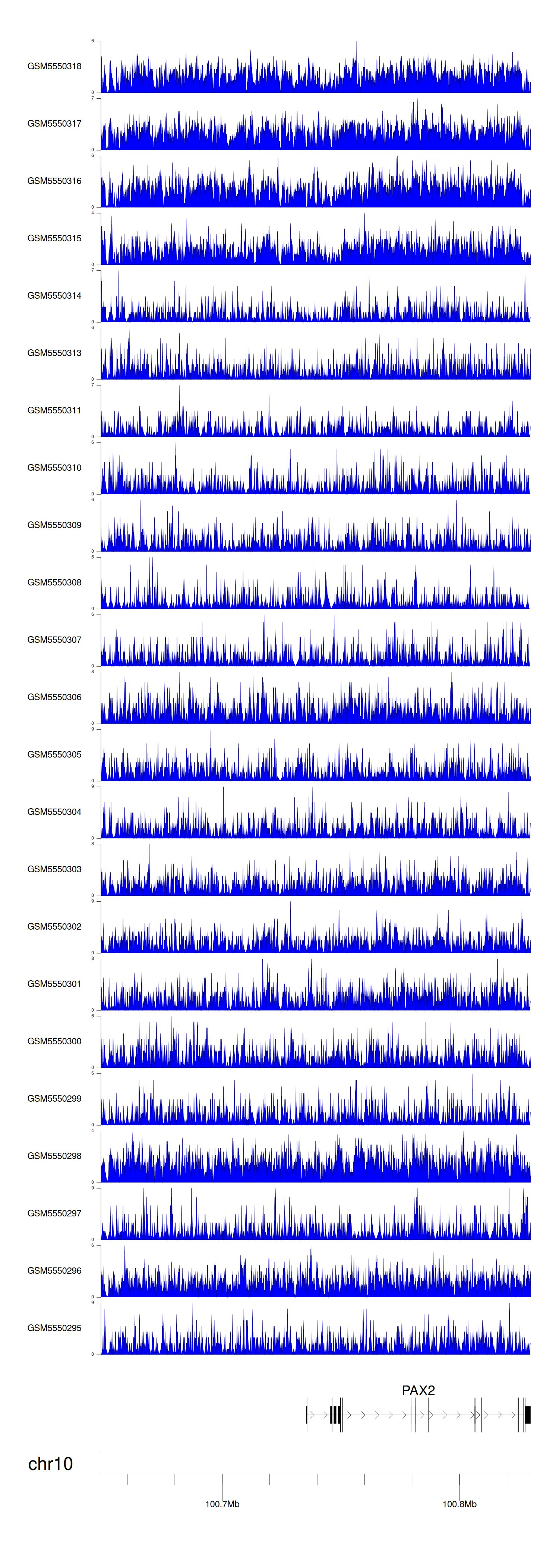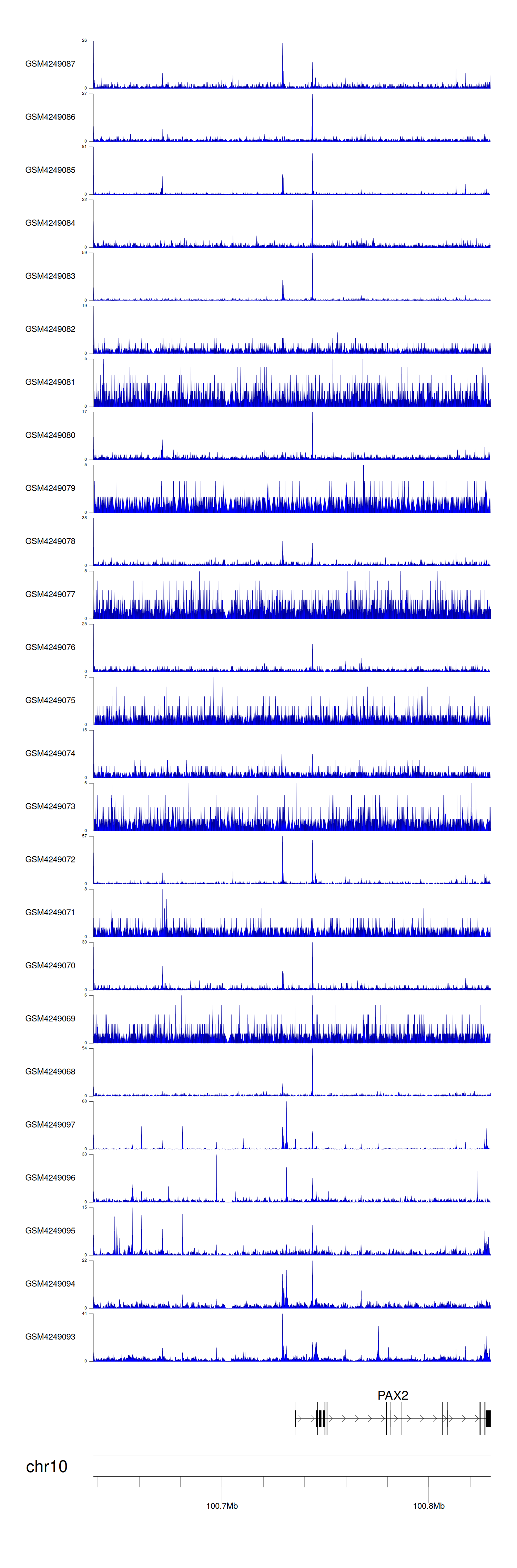 Summary PAX2 encodes paired box gene 2, one of many human homologues of the Drosophila melanogaster gene prd. The central feature of this transcription factor gene family is the conserved DNA-binding paired box domain. PAX2 is believed to be a target of transcriptional supression by the tumor suppressor gene WT1. Mutations within PAX2 have been shown to result in optic nerve colobomas and renal hypoplasia. Alternative splicing of this gene results in multiple transcript variants. [provided by RefSeq, Dec 2014]