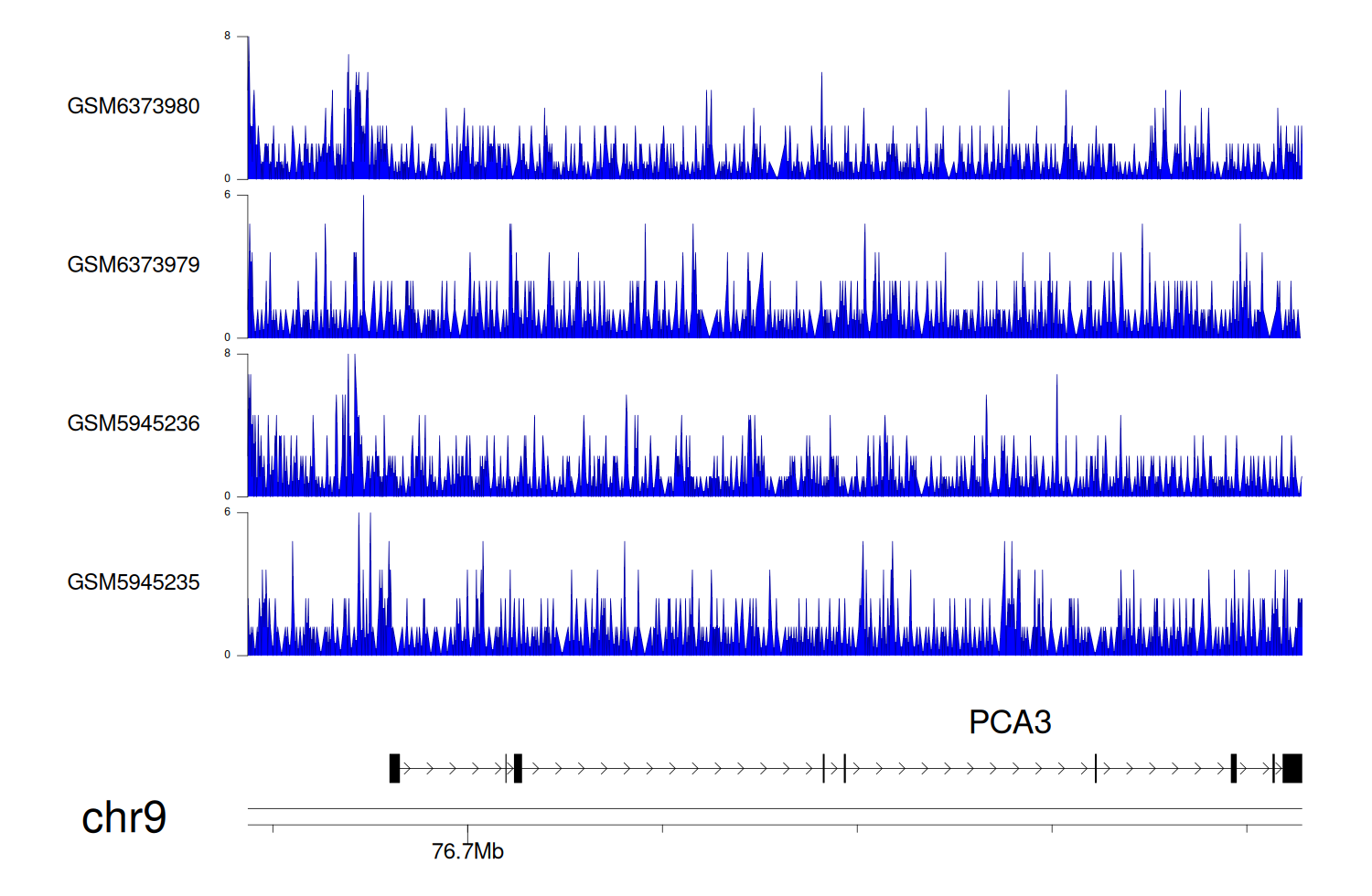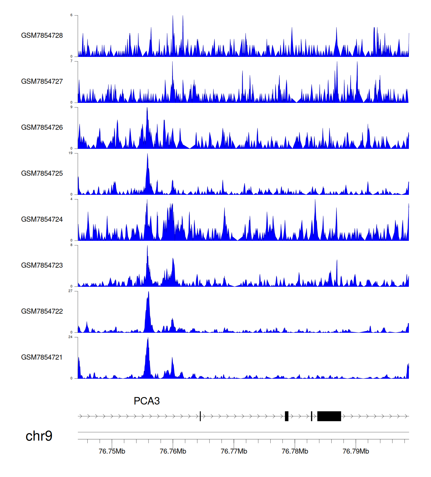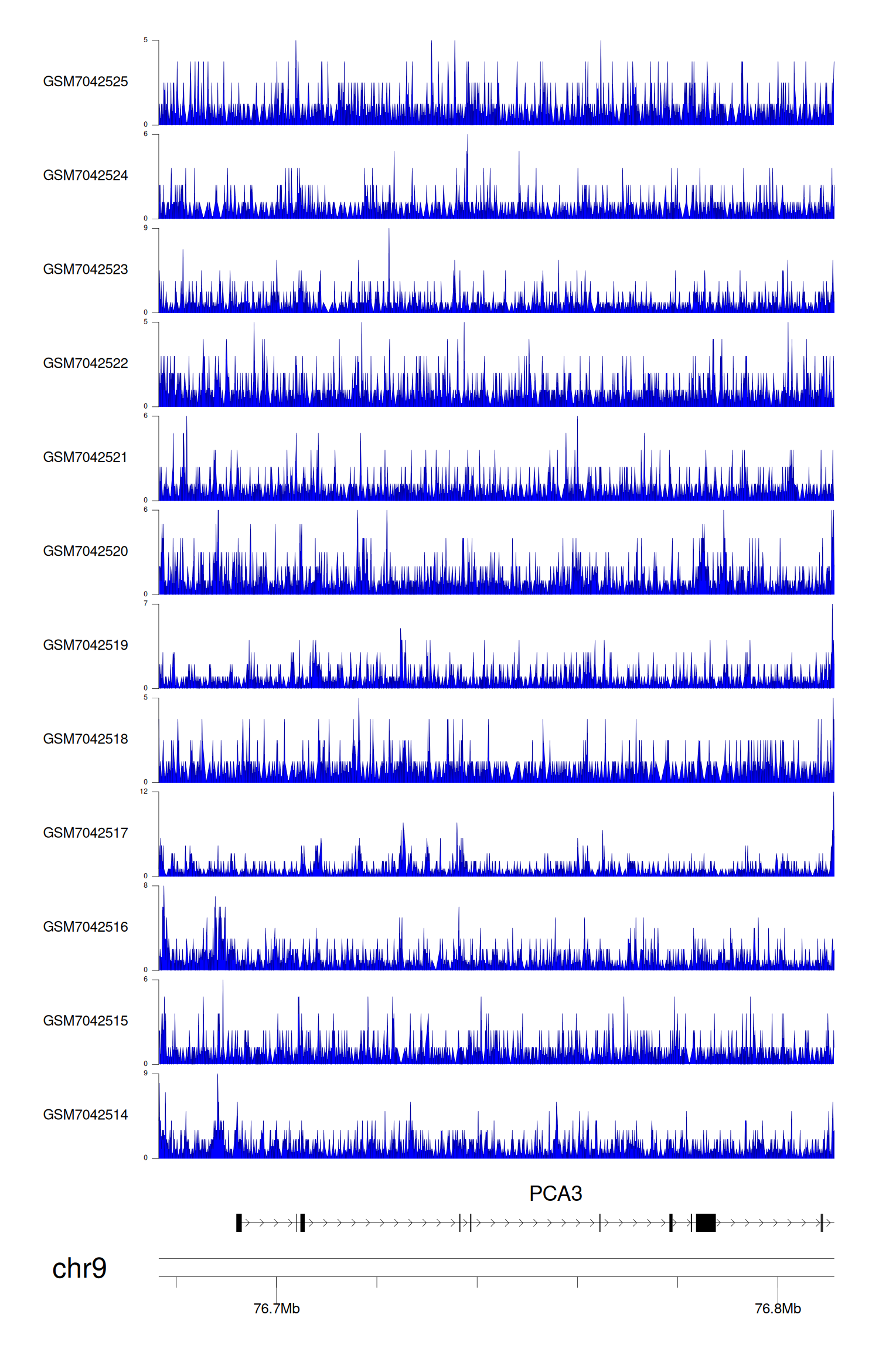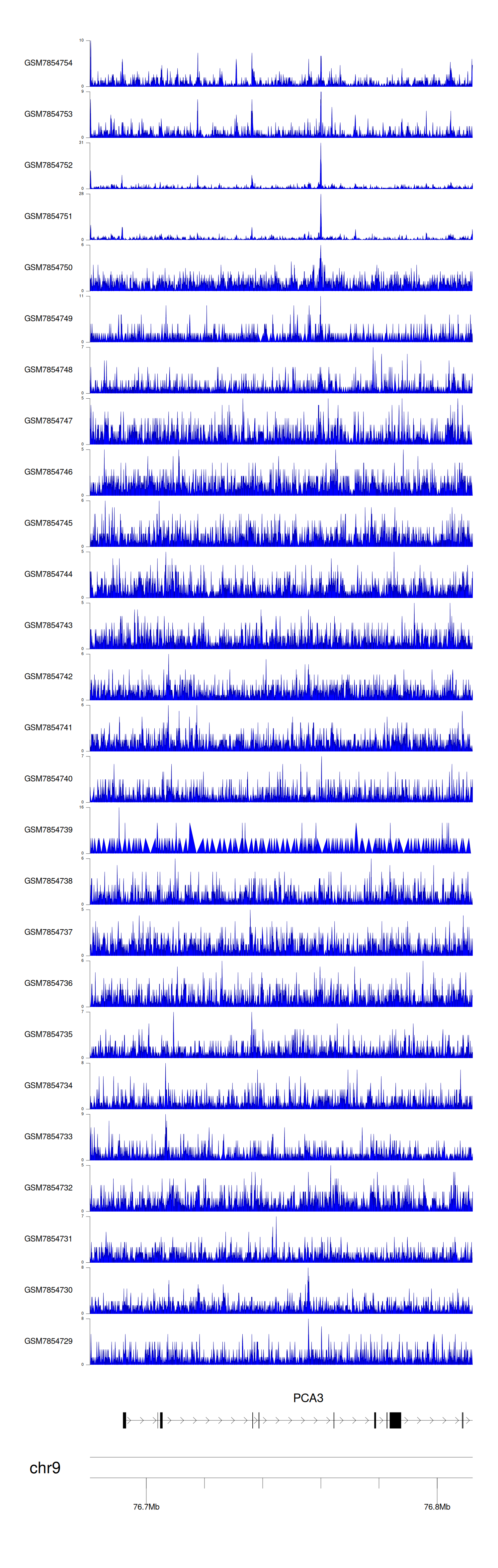 Summary This gene produces a spliced, long non-coding RNA that is highly overexpressed in most types of prostate cancer cells and is used as a specific biomarker for this type of cancer. This gene is embedded in an intronic region of the prune2 gene on the opposite DNA strand. The transcript regulates prune2 levels through formation of a double-stranded RNA that undergoes adenosine deaminase acting on RNA-dependent adenosine-to-inosine RNA editing. In prostate cancer derived cells, overexpression of PCA induced downregulation of prune2, leading to decreased cell proliferation. Conversely, silencing in prostate cancer cells resulted in increased proliferation. Regulation of this gene appears to be sensitive to androgen-receptor activation, a molecular signature of prostate cancer. Alternative splicing results in multiple transcript variants. [provided by RefSeq, Jan 2017]