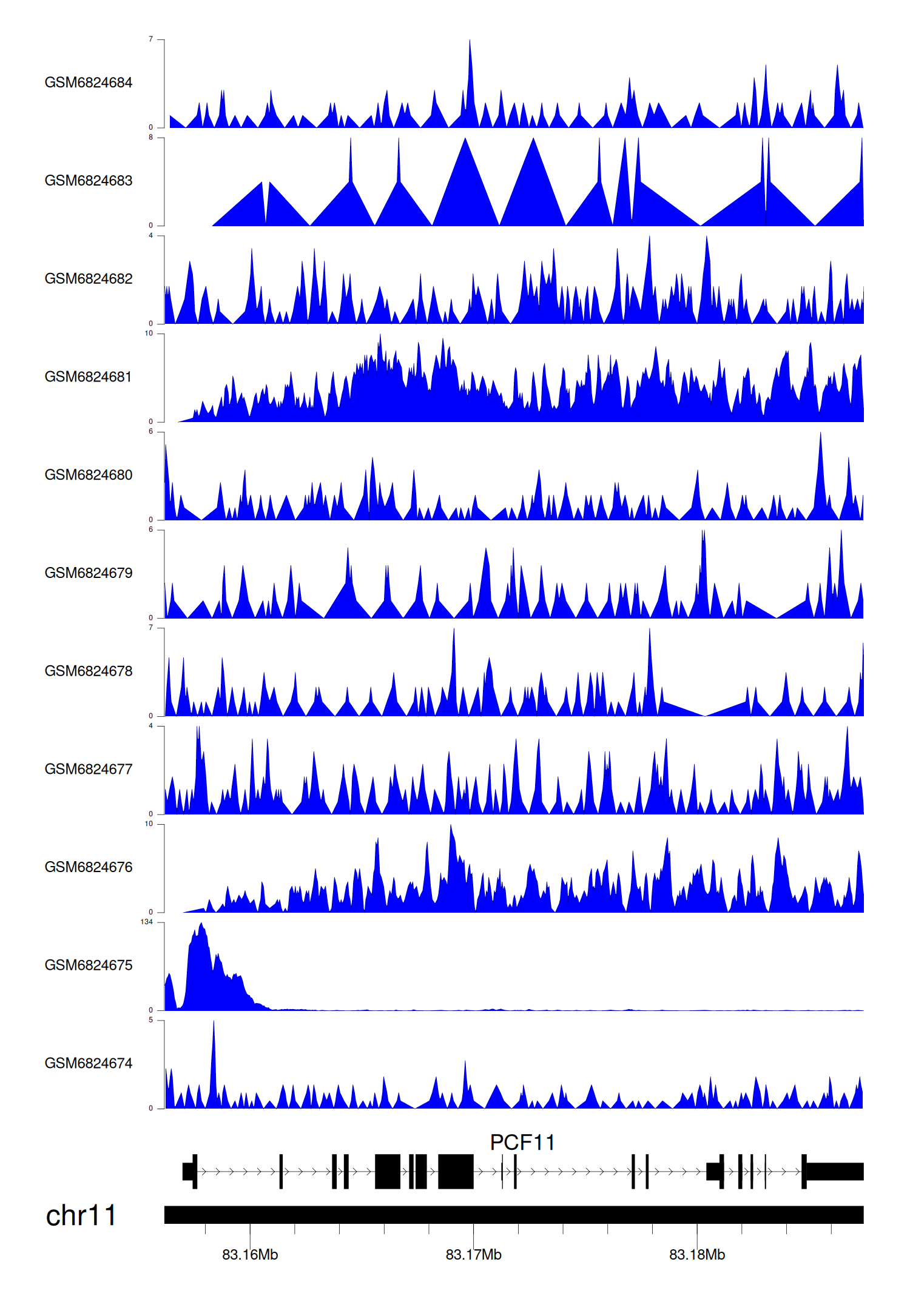 > Dataset: GSE211651 - PCF11 peak across samples