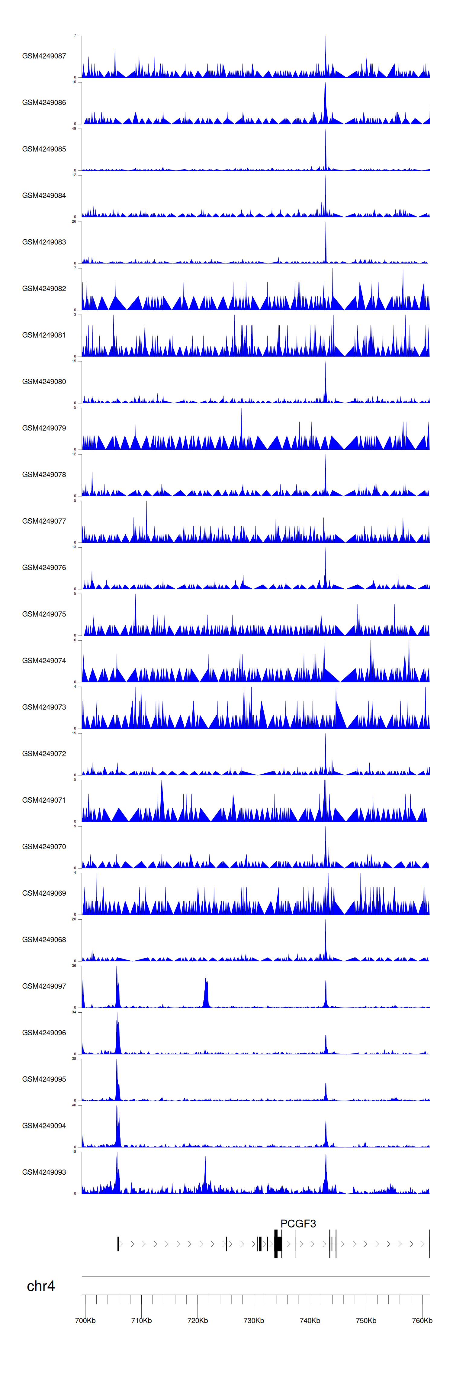 > Dataset: GSE143026 - PCGF3 peak across samples
