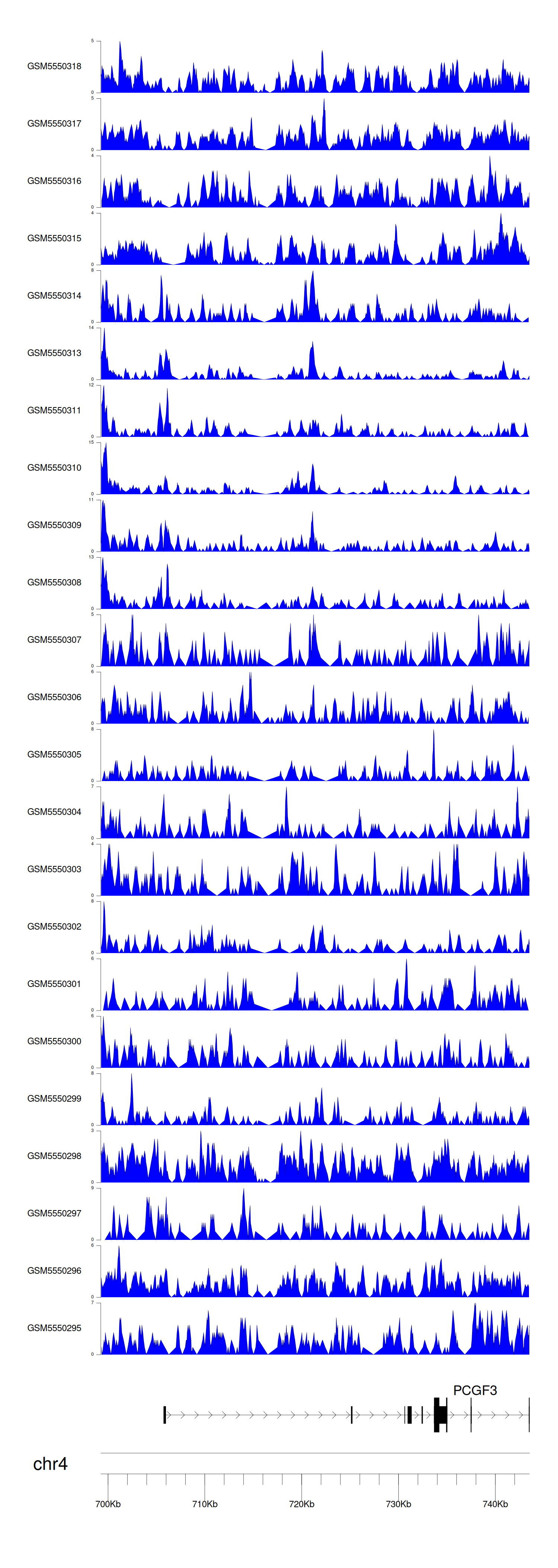 > Dataset: GSE183048 - PCGF3 peak across samples