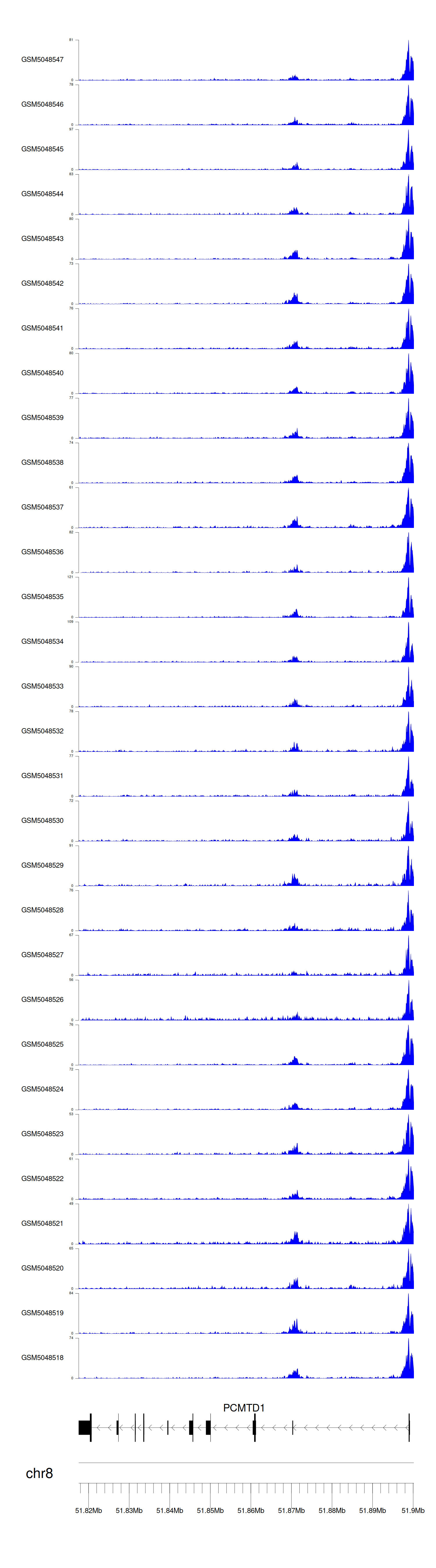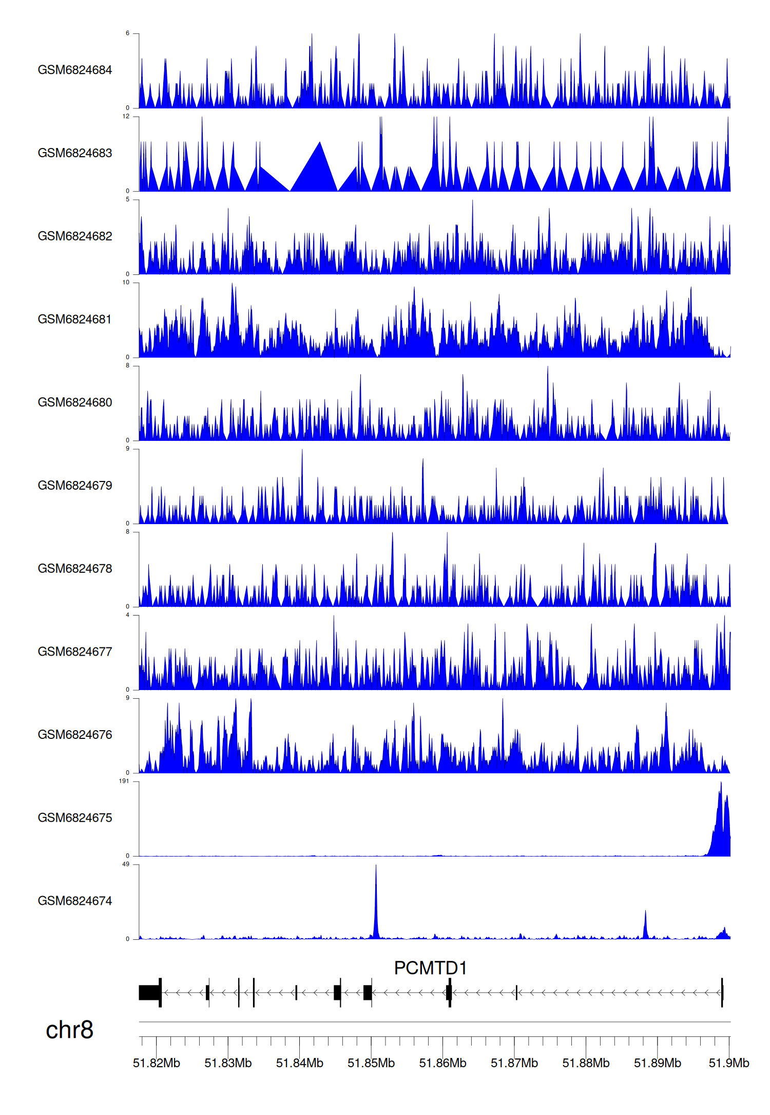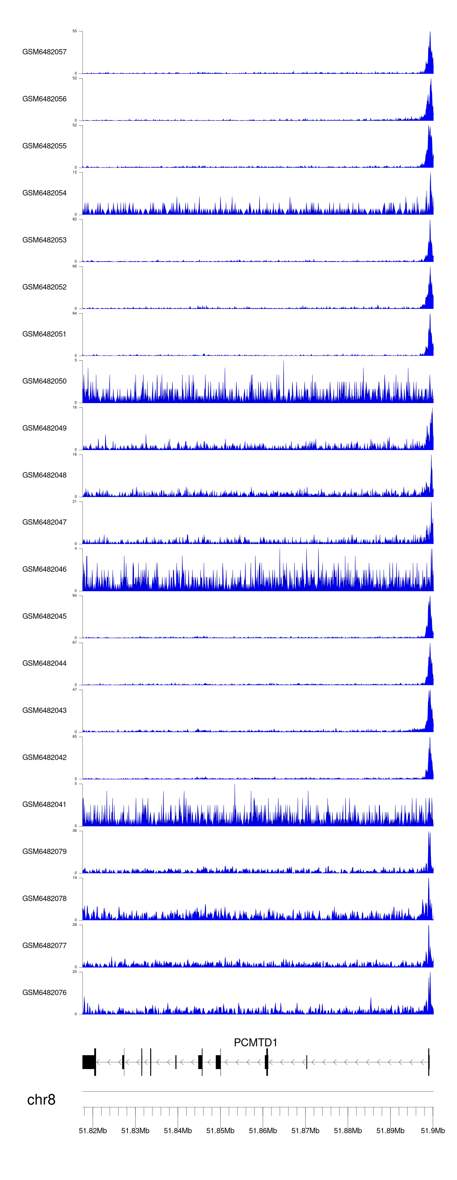 > Dataset: GSE165703 - PCMTD1 peak across samples