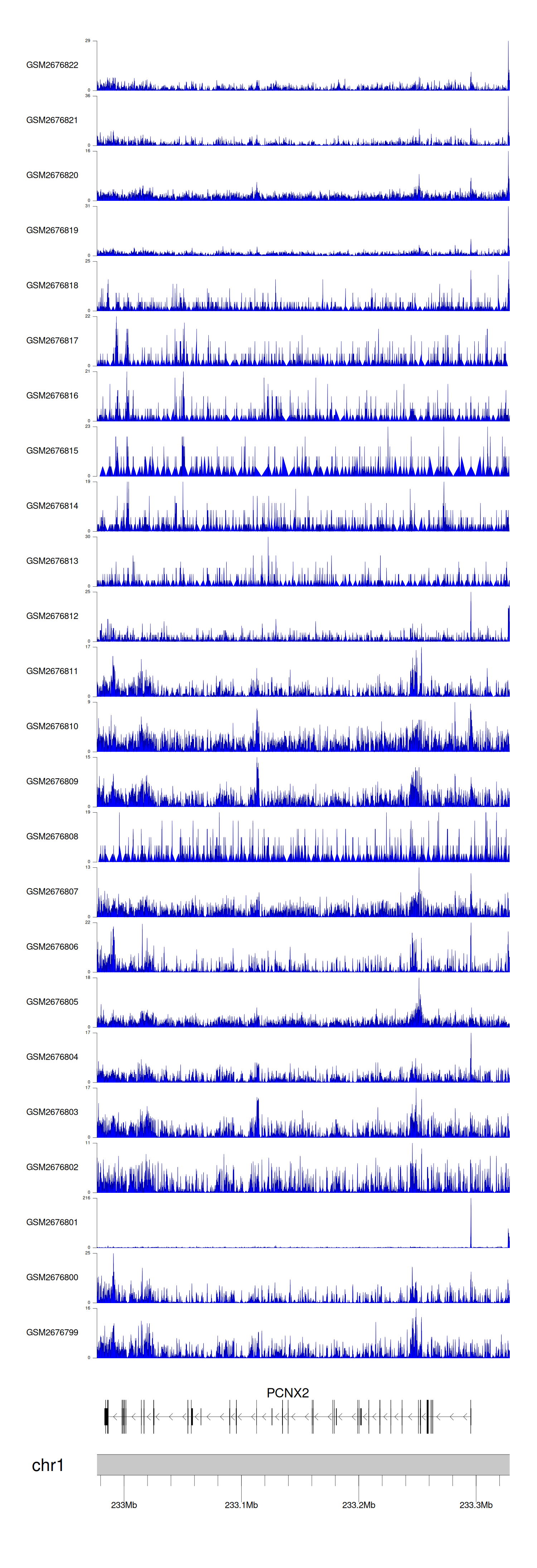 > Dataset: GSE211651 - PCNX2 peak across samples