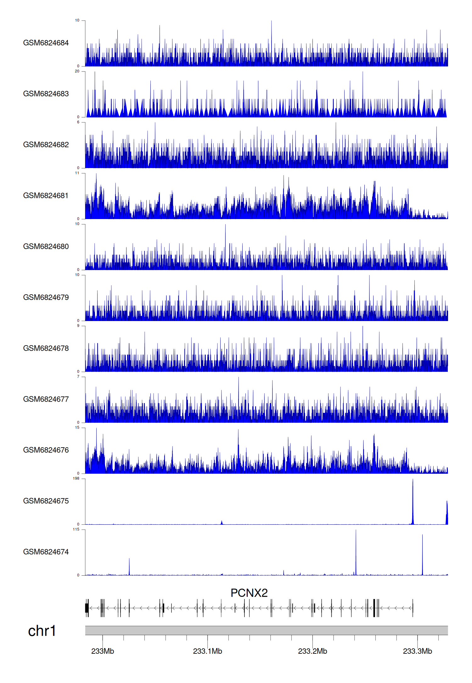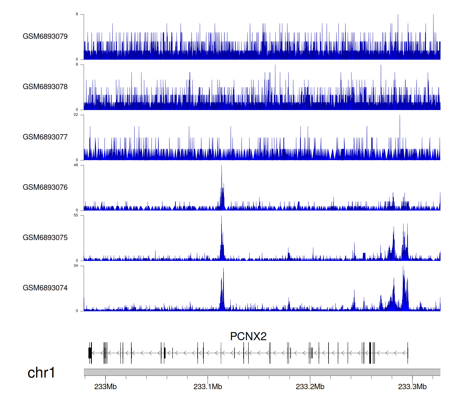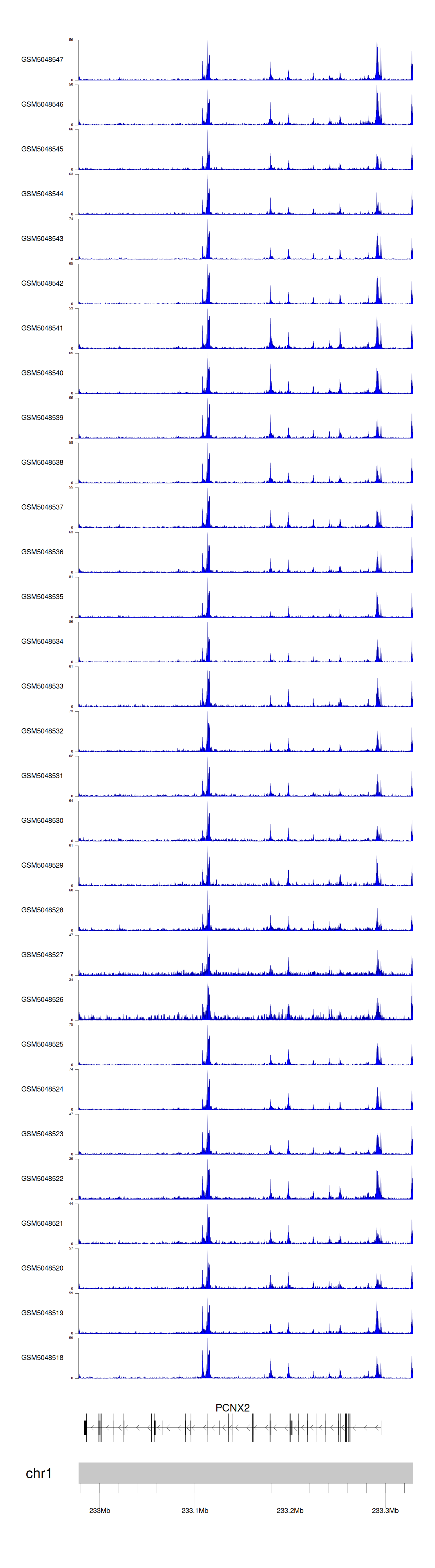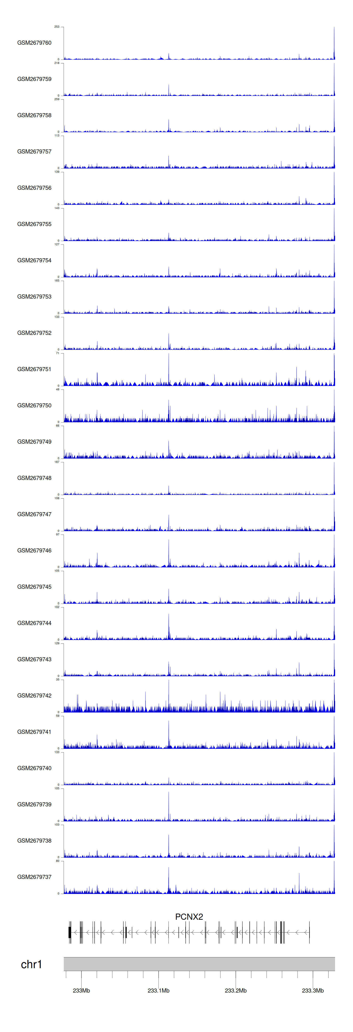 > Dataset: GSE220859 - PCNX2 peak across samples