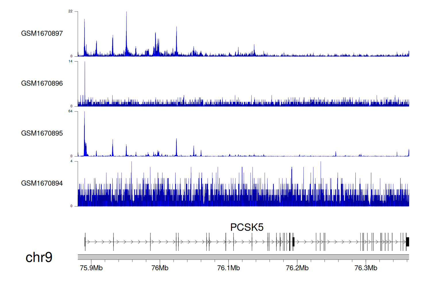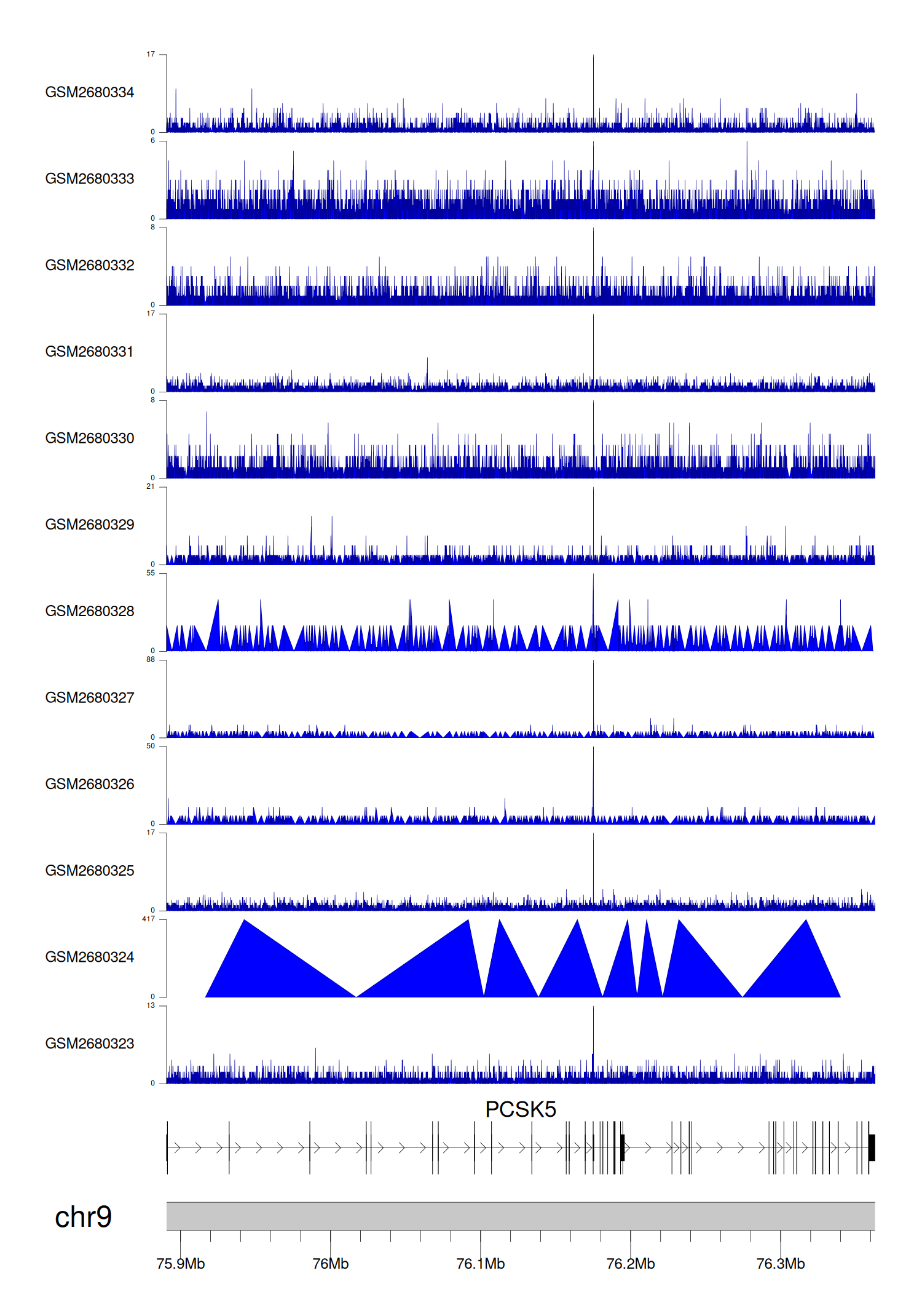 > Dataset: GSE68402 - PCSK5 peak across samples