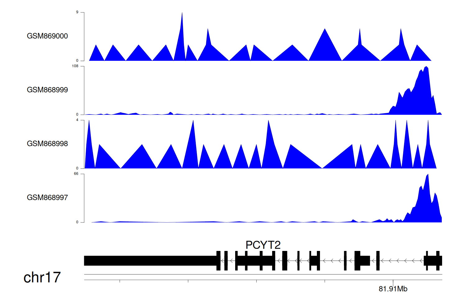 > Dataset: GSE35465 - PCYT2 peak across samples
