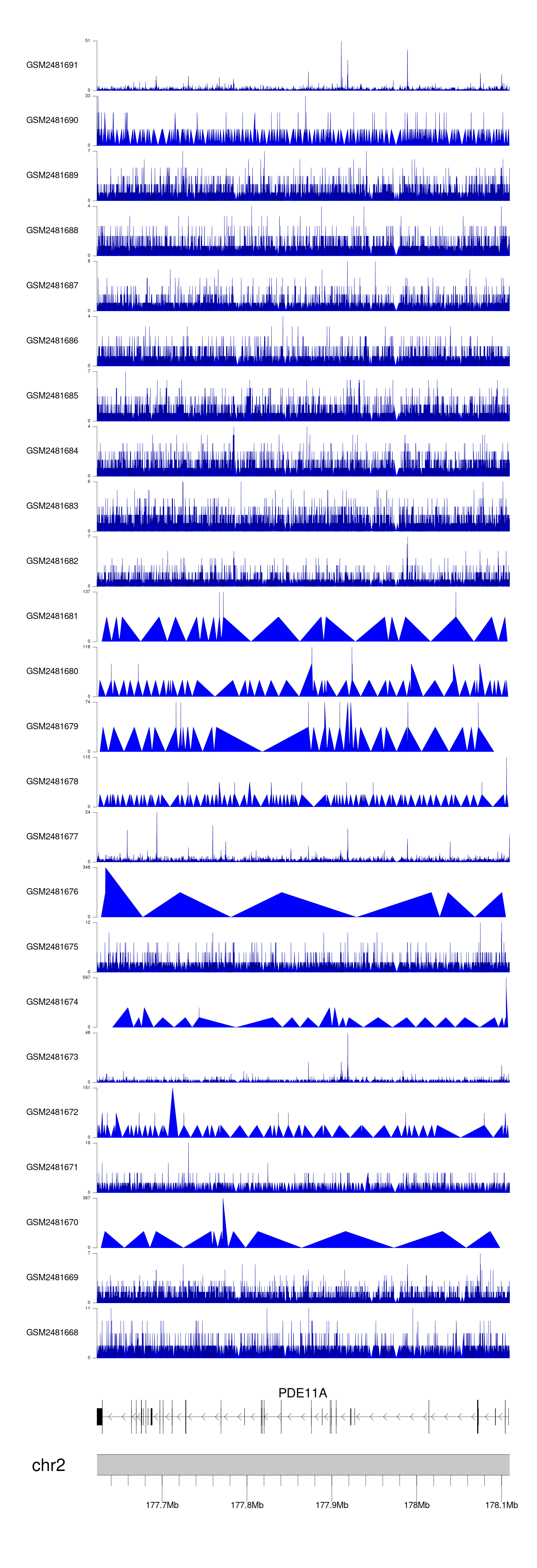 The 3',5'-cyclic nucleotides cAMP and cGMP function as second messengers in a wide variety of signal transduction pathways. 3',5'-cyclic nucleotide phosphodiesterases (PDEs) catalyze the hydrolysis of cAMP and cGMP to the corresponding 5'-monophosphates and provide a mechanism to downregulate cAMP and cGMP signaling. This gene encodes a member of the PDE protein superfamily. Mutations in this gene are a cause of Cushing disease and adrenocortical hyperplasia. Multiple transcript variants encoding different isoforms have been found for this gene. [provided by RefSeq, Jul 2008] |