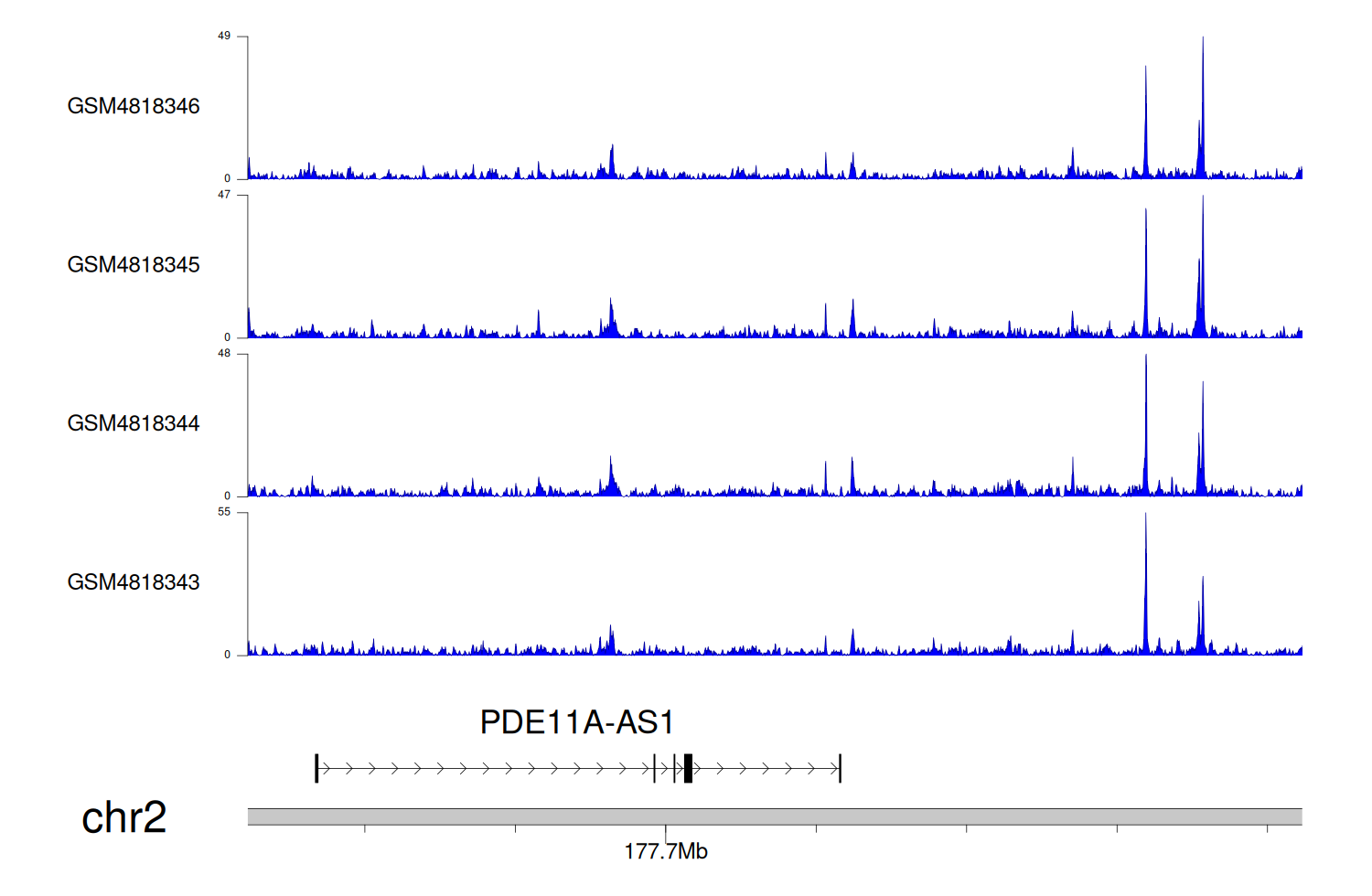 > Dataset: GSE270130 - PDE11A-AS1 peak across samples