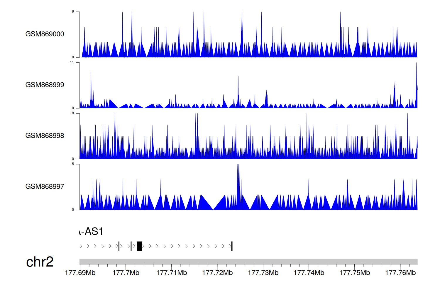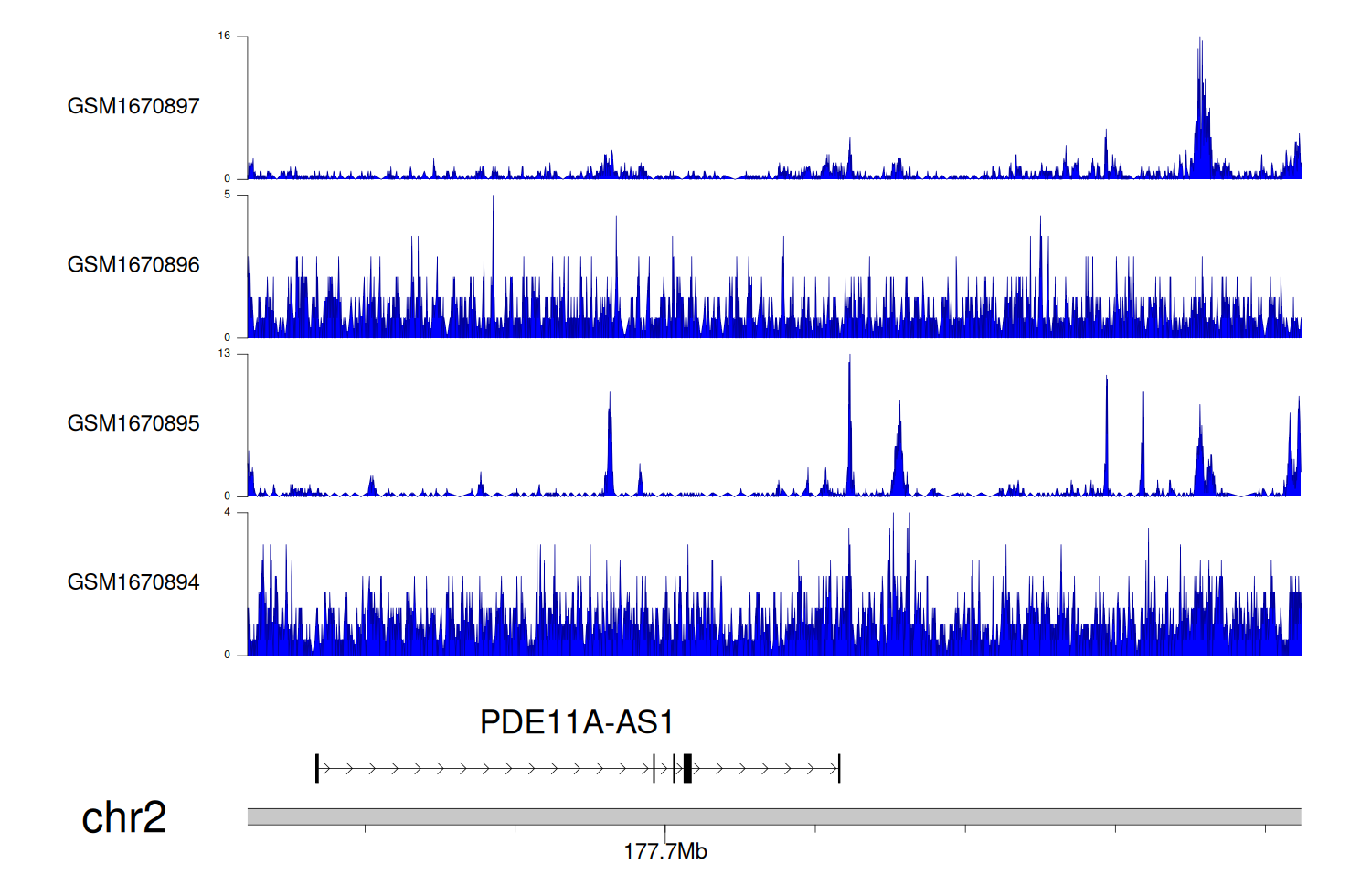 > Dataset: GSE68402 - PDE11A-AS1 peak across samples