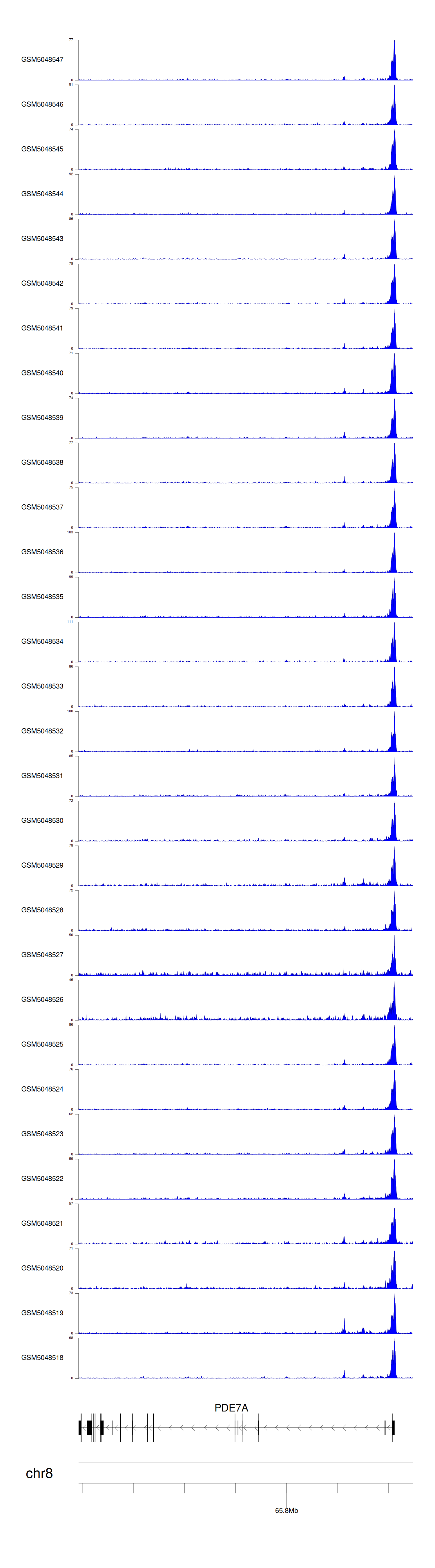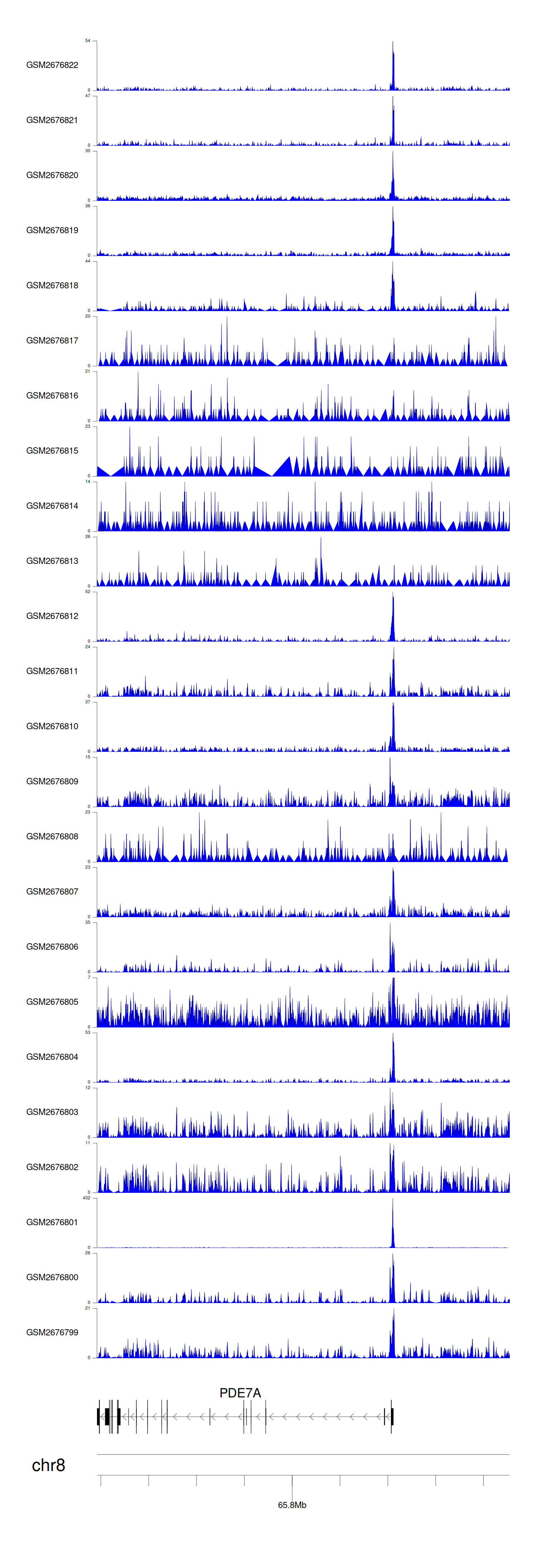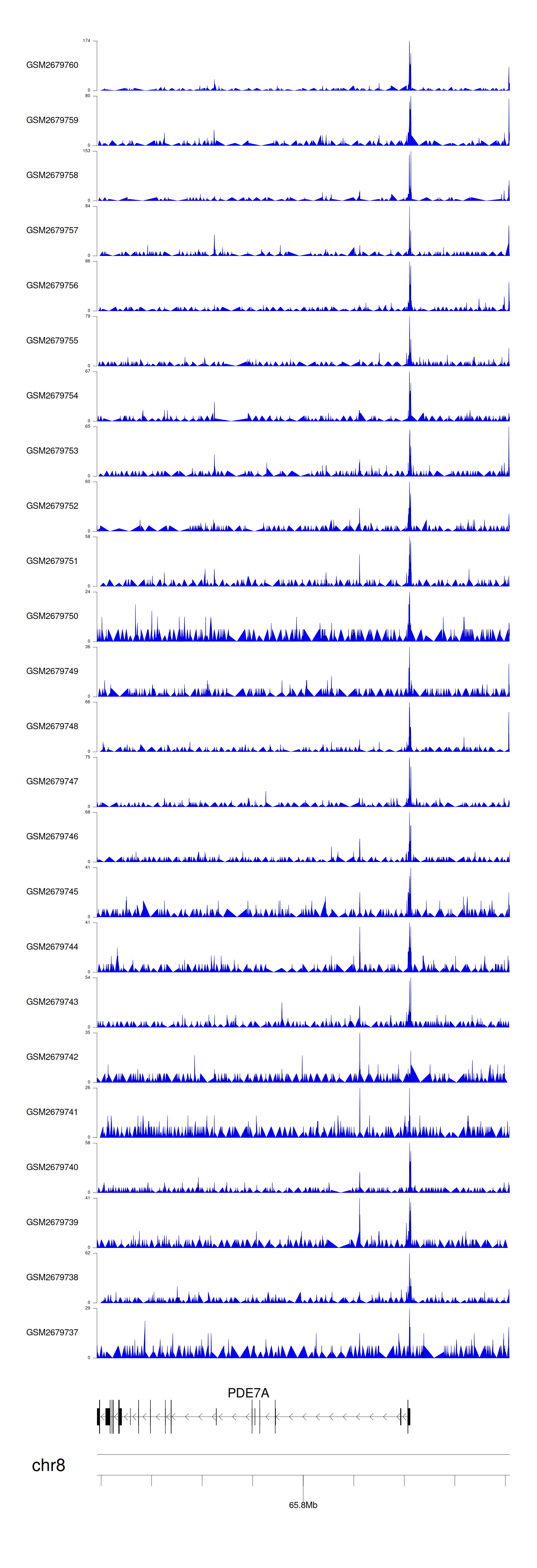 > Dataset: GSE30738 - PDE7A peak across samples