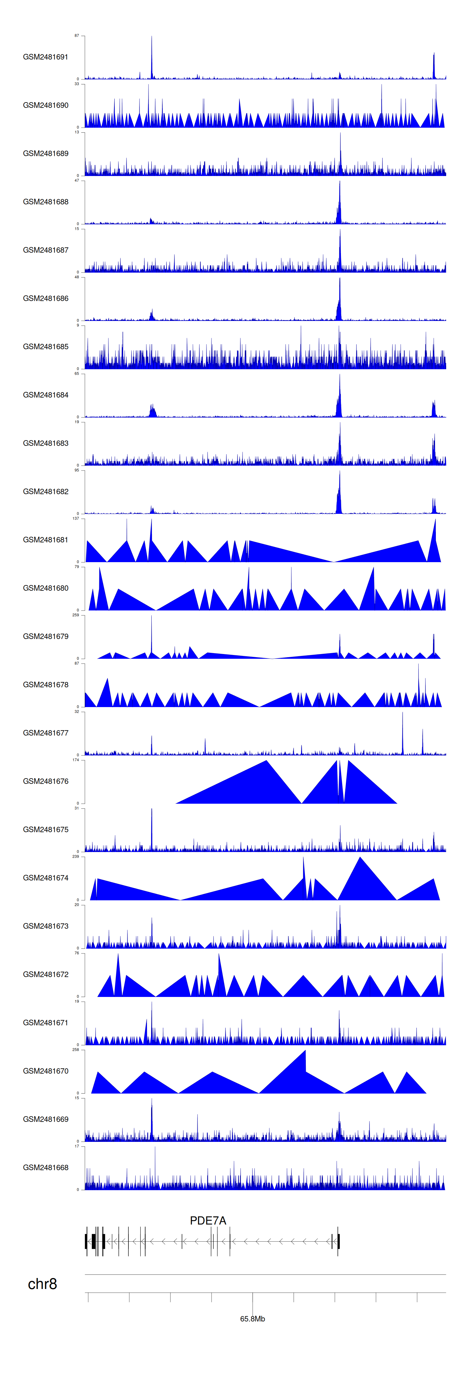 The protein encoded by this gene belongs to the cyclic nucleotide phosphodiesterase (PDE) family, and PDE7 subfamily. This PDE hydrolyzes the second messenger, cAMP, which is a regulator and mediator of a number of cellular responses to extracellular signals. Thus, by regulating the cellular concentration of cAMP, this protein plays a key role in many important physiological processes. Alternatively spliced transcript variants encoding different isoforms have been described for this gene. [provided by RefSeq, Jul 2011] |