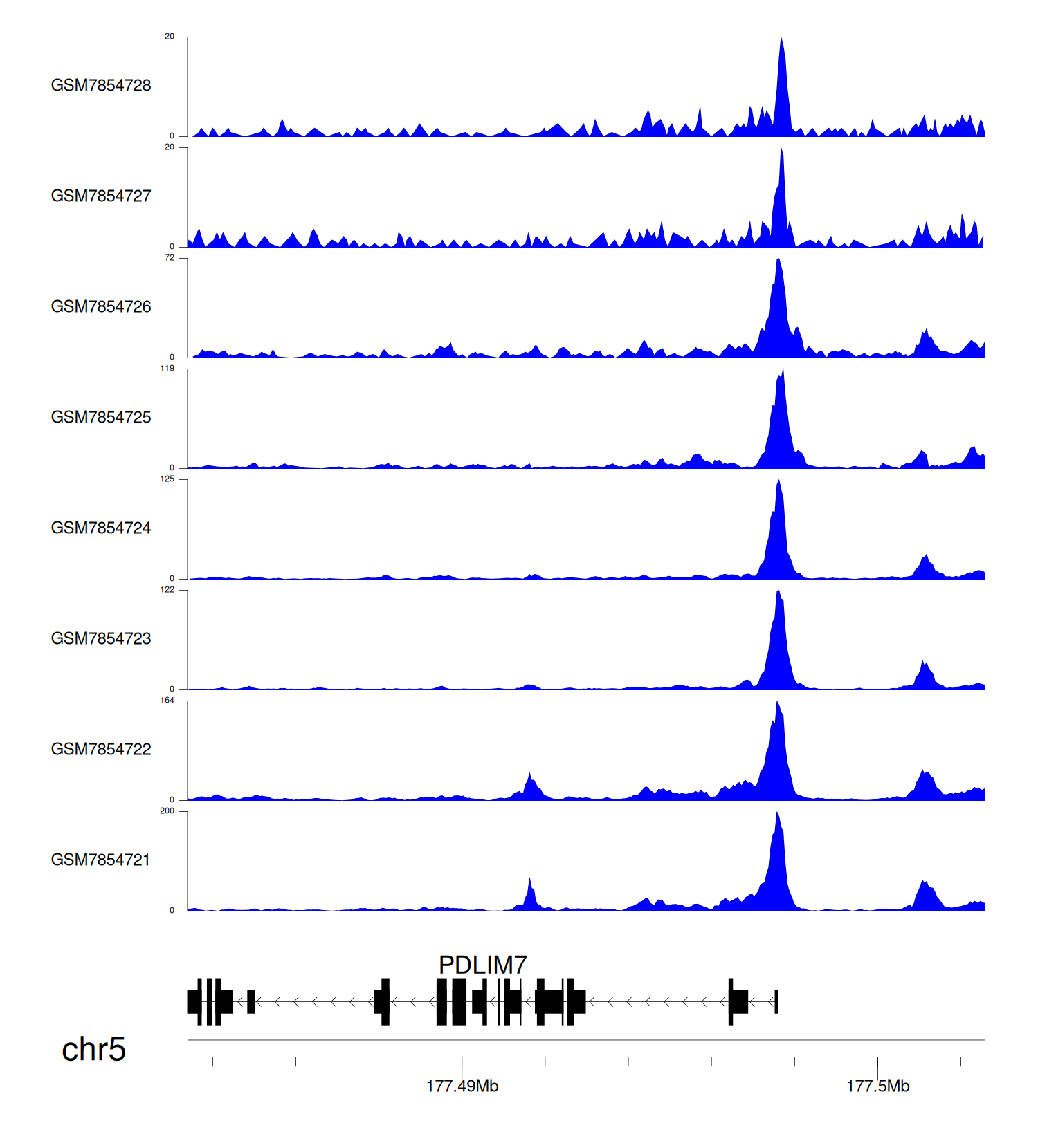 > Dataset: GSE198334 - PDLIM7 peak across samples