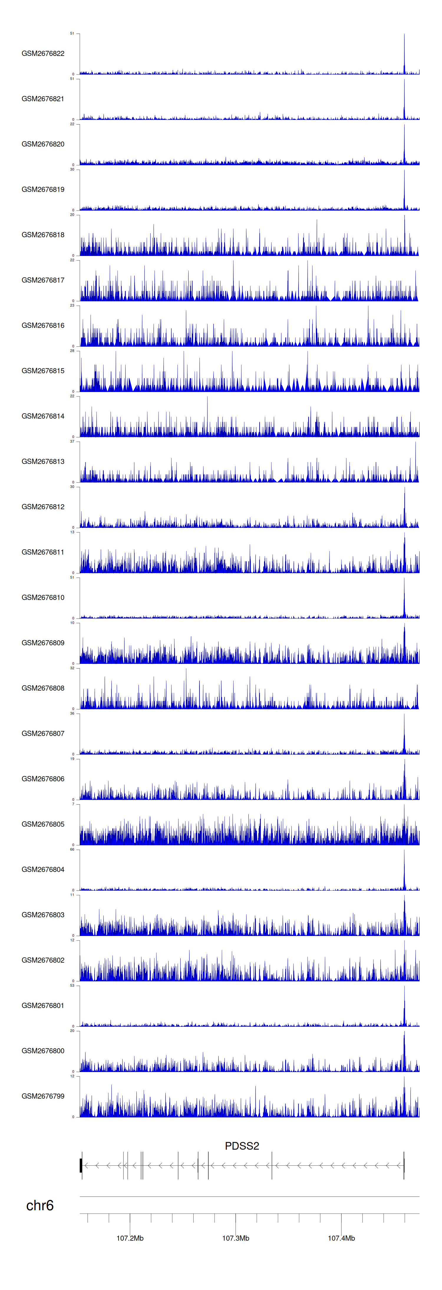 > Dataset: GSE211651 - PDSS2 peak across samples