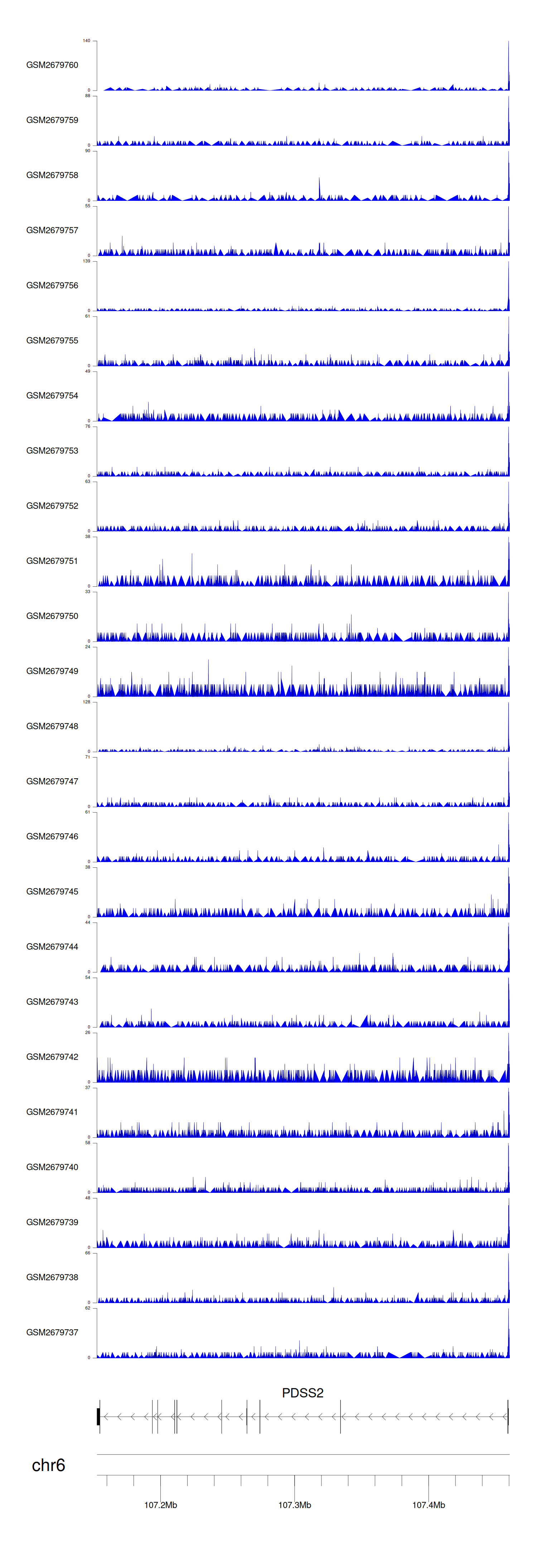 > Dataset: GSE100376 - PDSS2 peak across samples