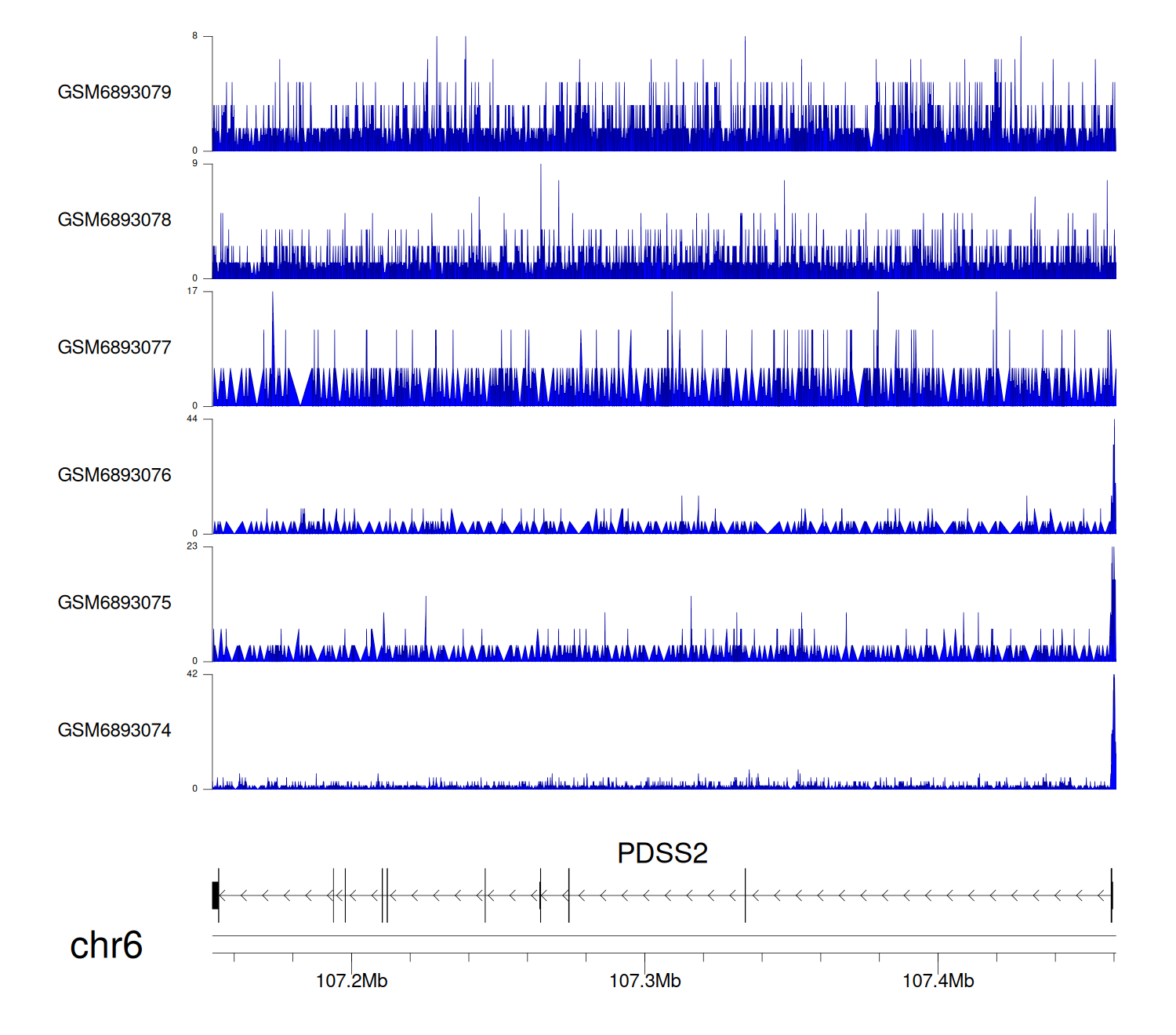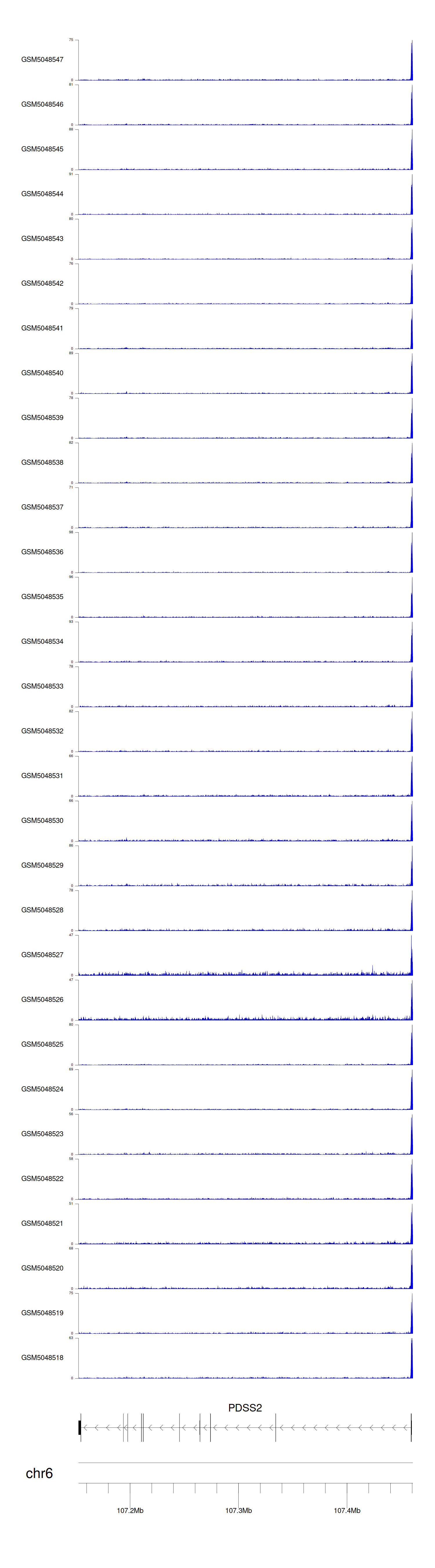 > Dataset: GSE220859 - PDSS2 peak across samples