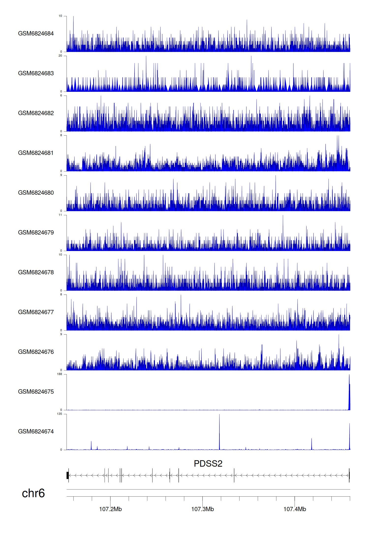 > Dataset: GSE221688 - PDSS2 peak across samples
