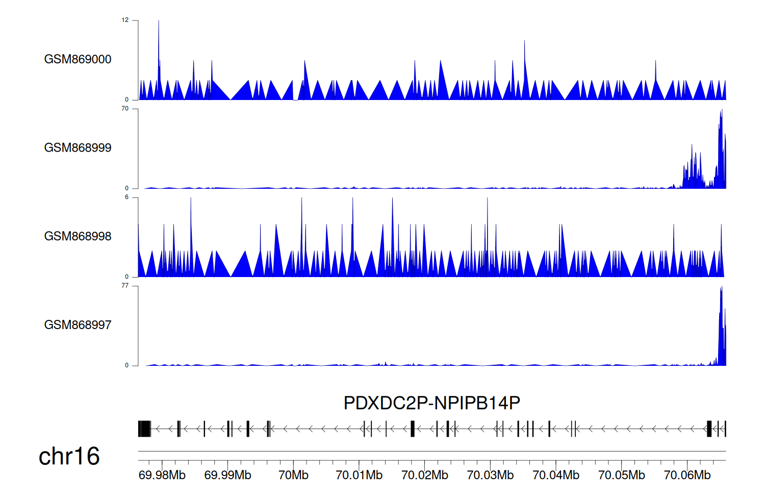 > Dataset: GSE68402 - PDXDC2P-NPIPB14P peak across samples