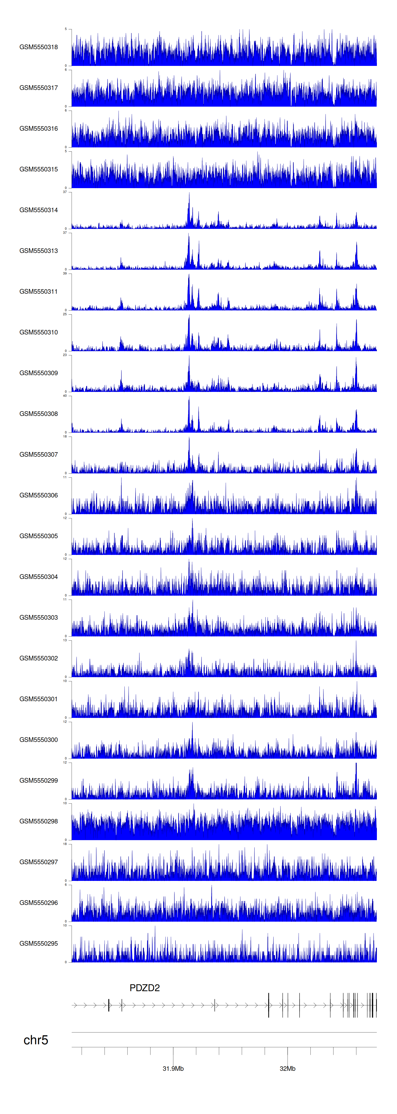 > Dataset: GSE143026 - PDZD2 peak across samples