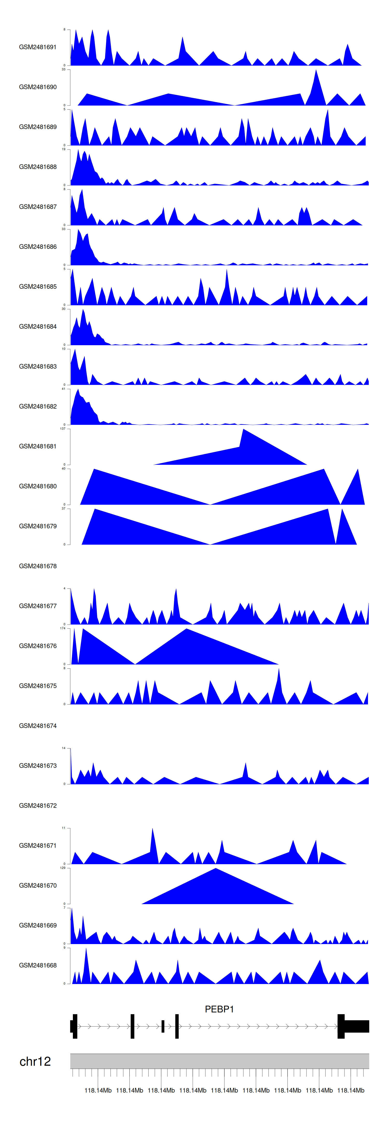 > Dataset: GSE94732 - PEBP1 peak across samples