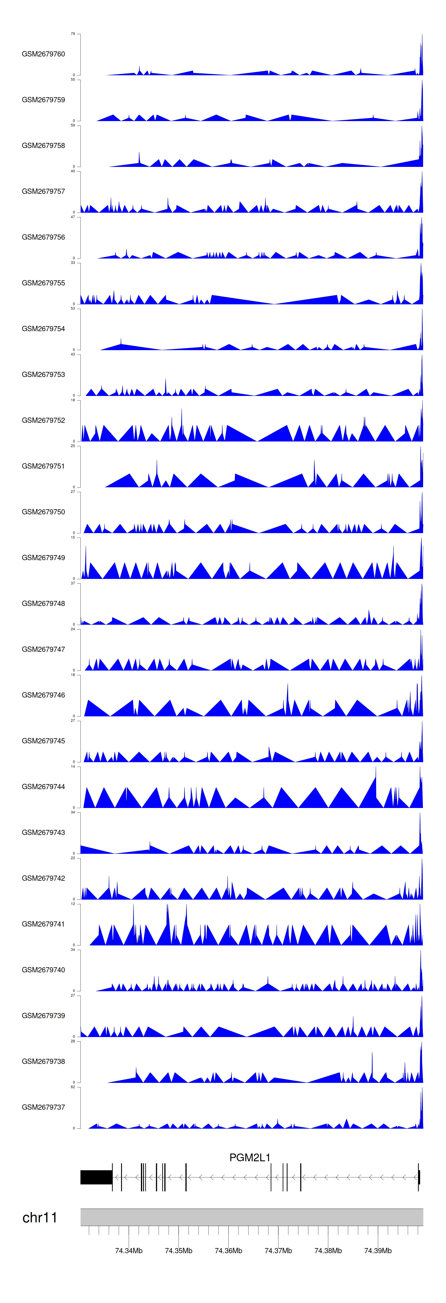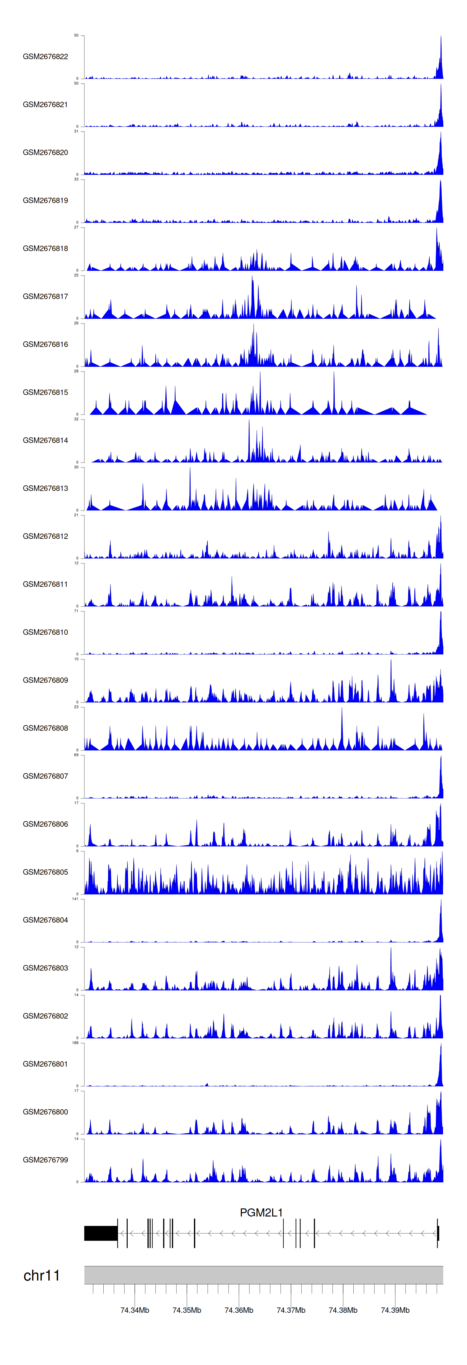 > Dataset: GSE100376 - PGM2L1 peak across samples