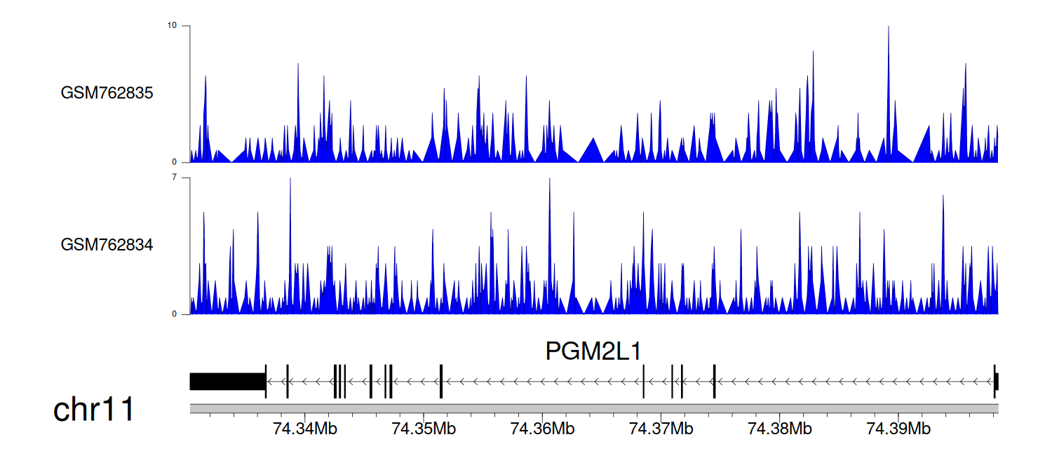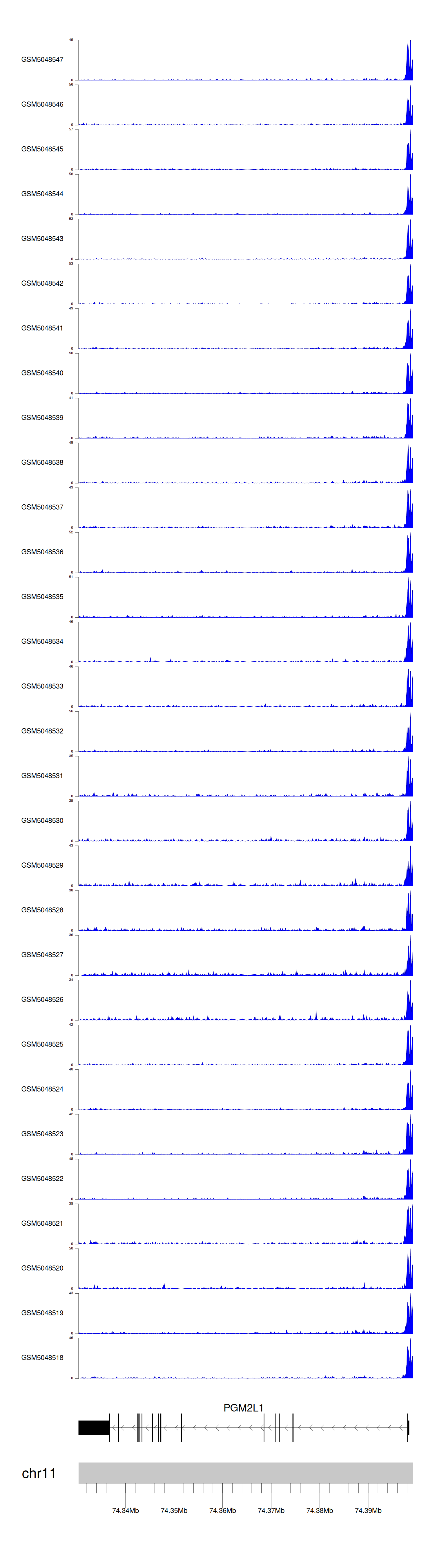> Dataset: GSE30738 - PGM2L1 peak across samples