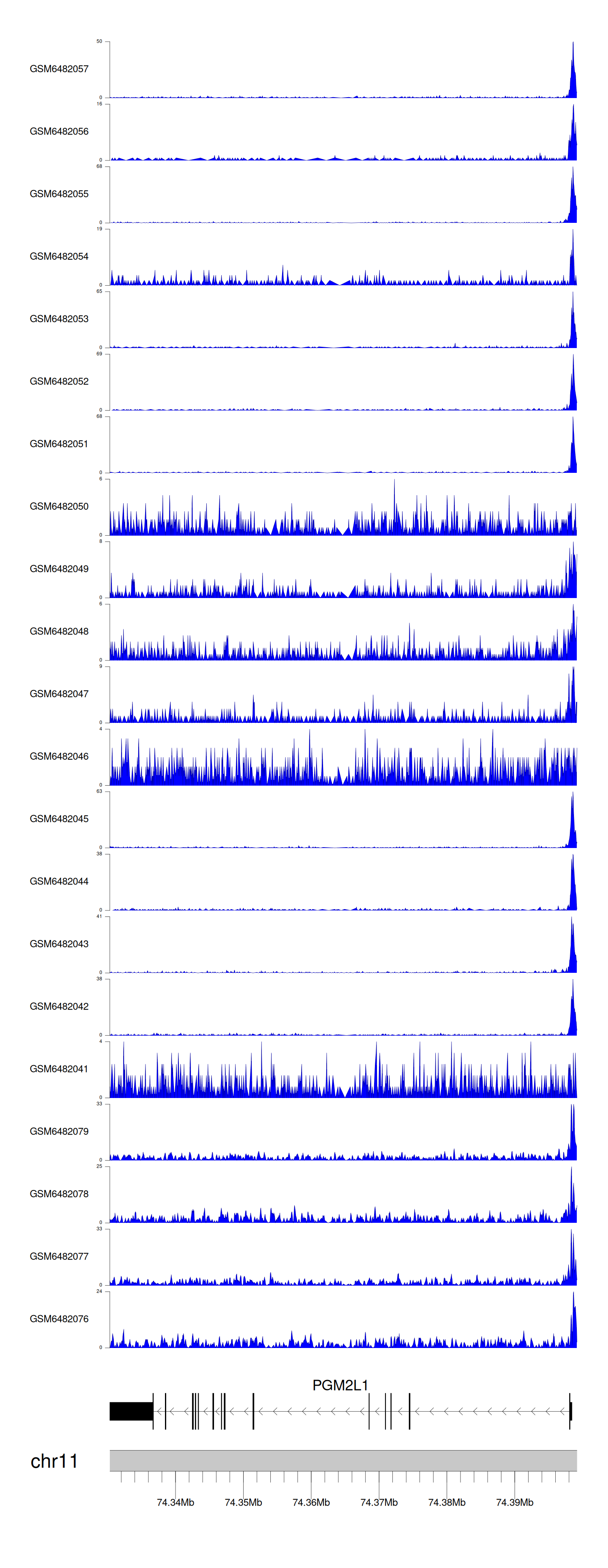 > Dataset: GSE165703 - PGM2L1 peak across samples