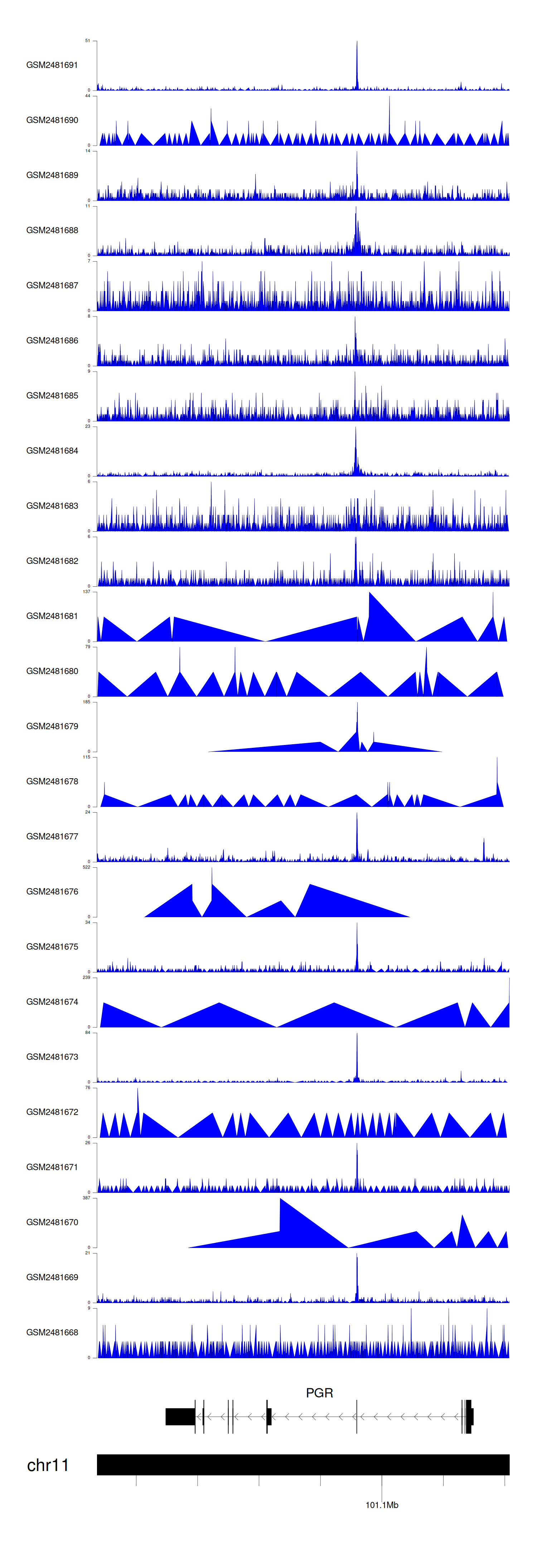 This gene encodes a member of the steroid receptor superfamily. The encoded protein mediates the physiological effects of progesterone, which plays a central role in reproductive events associated with the establishment and maintenance of pregnancy. This gene uses two distinct promotors and translation start sites in the first exon to produce several transcript variants, both protein coding and non-protein coding. Two of the isoforms (A and B) are identical except for an additional 165 amino acids found in the N-terminus of isoform B and mediate their own response genes and physiologic effects with little overlap. [provided by RefSeq, Sep 2015] |