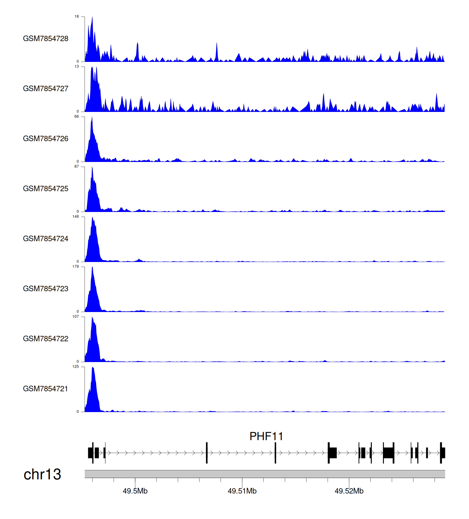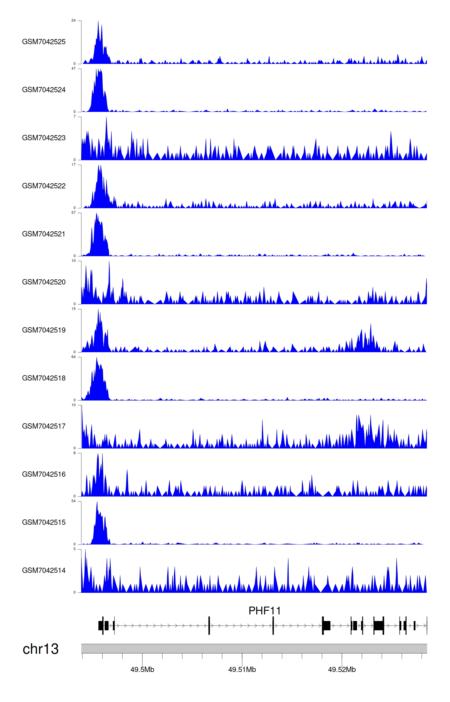> Dataset: GSE246059 - PHF11 peak across samples